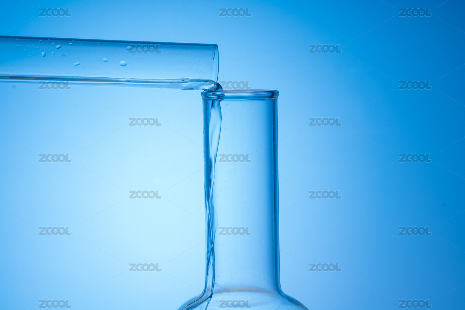 试管将液体倒进玻璃容器中