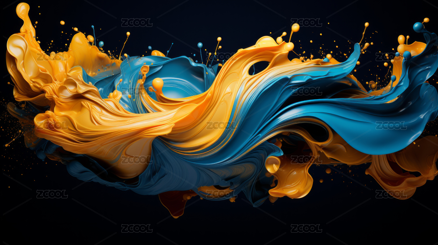 黄蓝交融的液体碰撞抽象背景