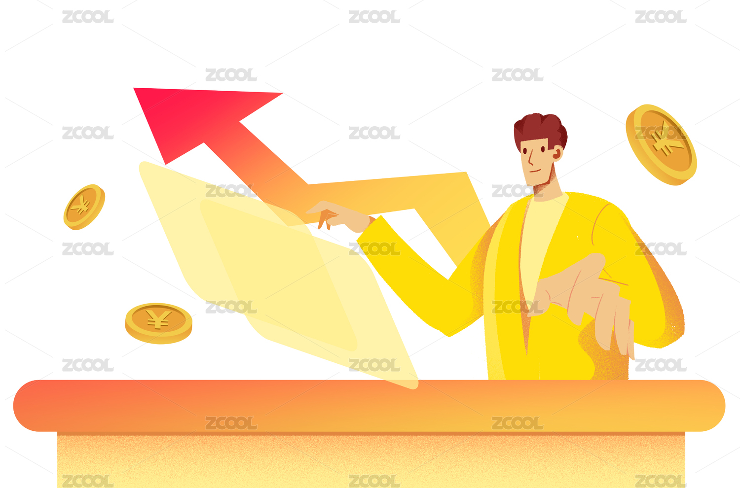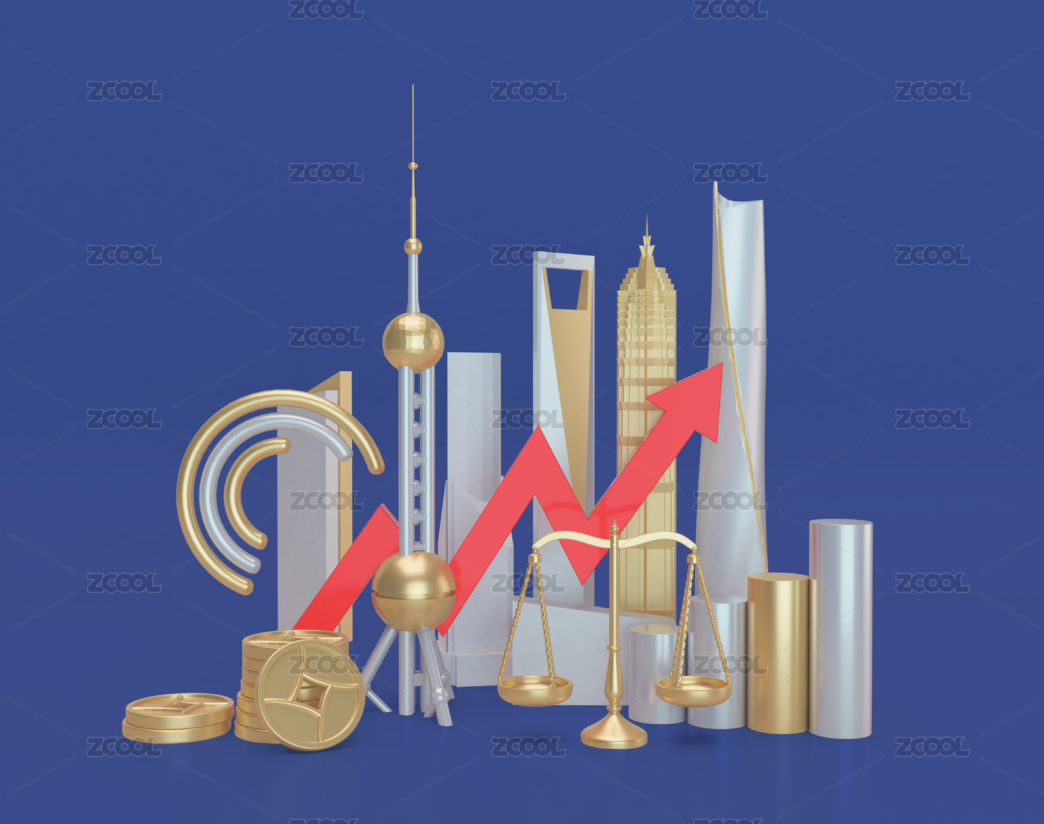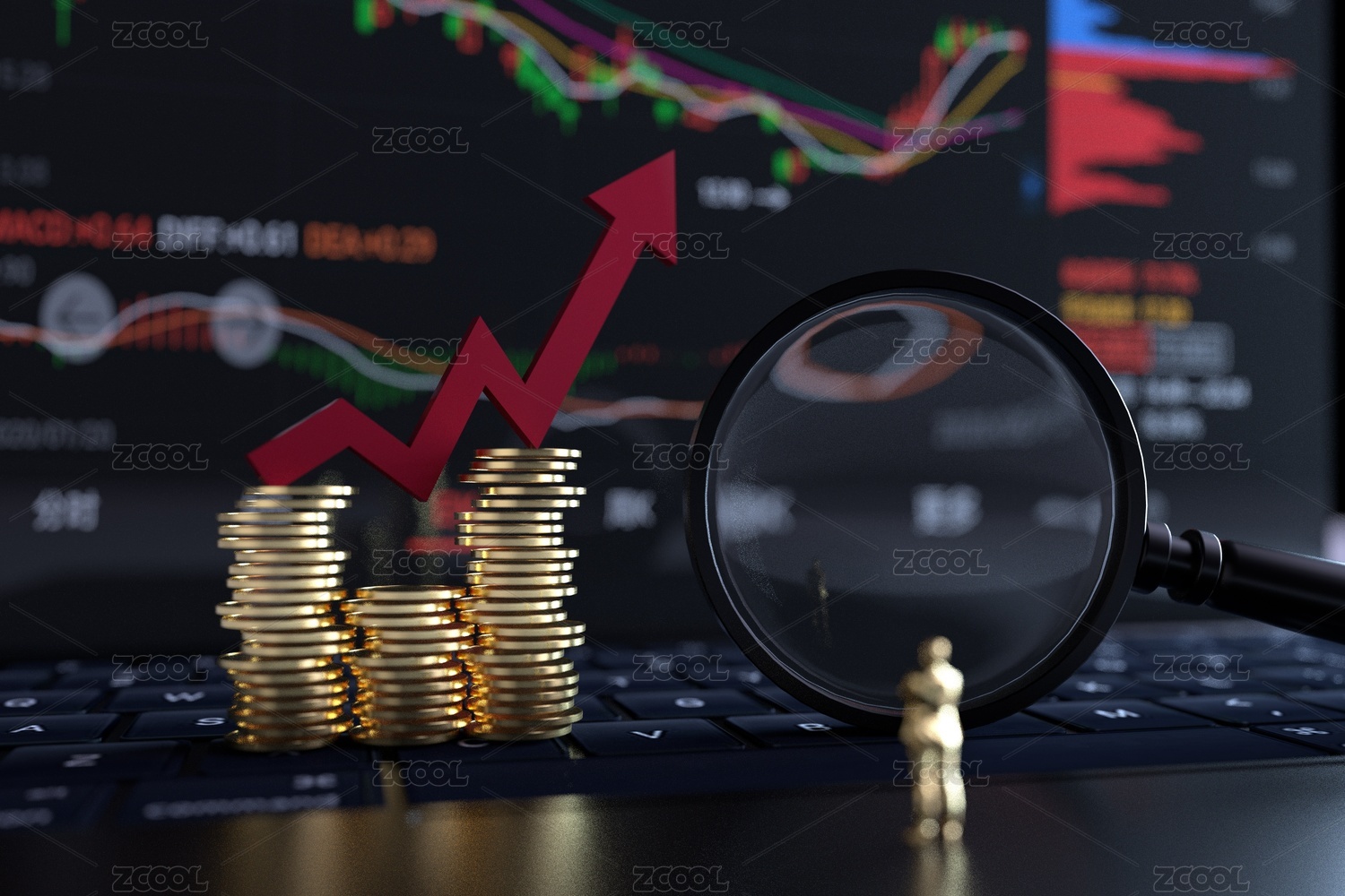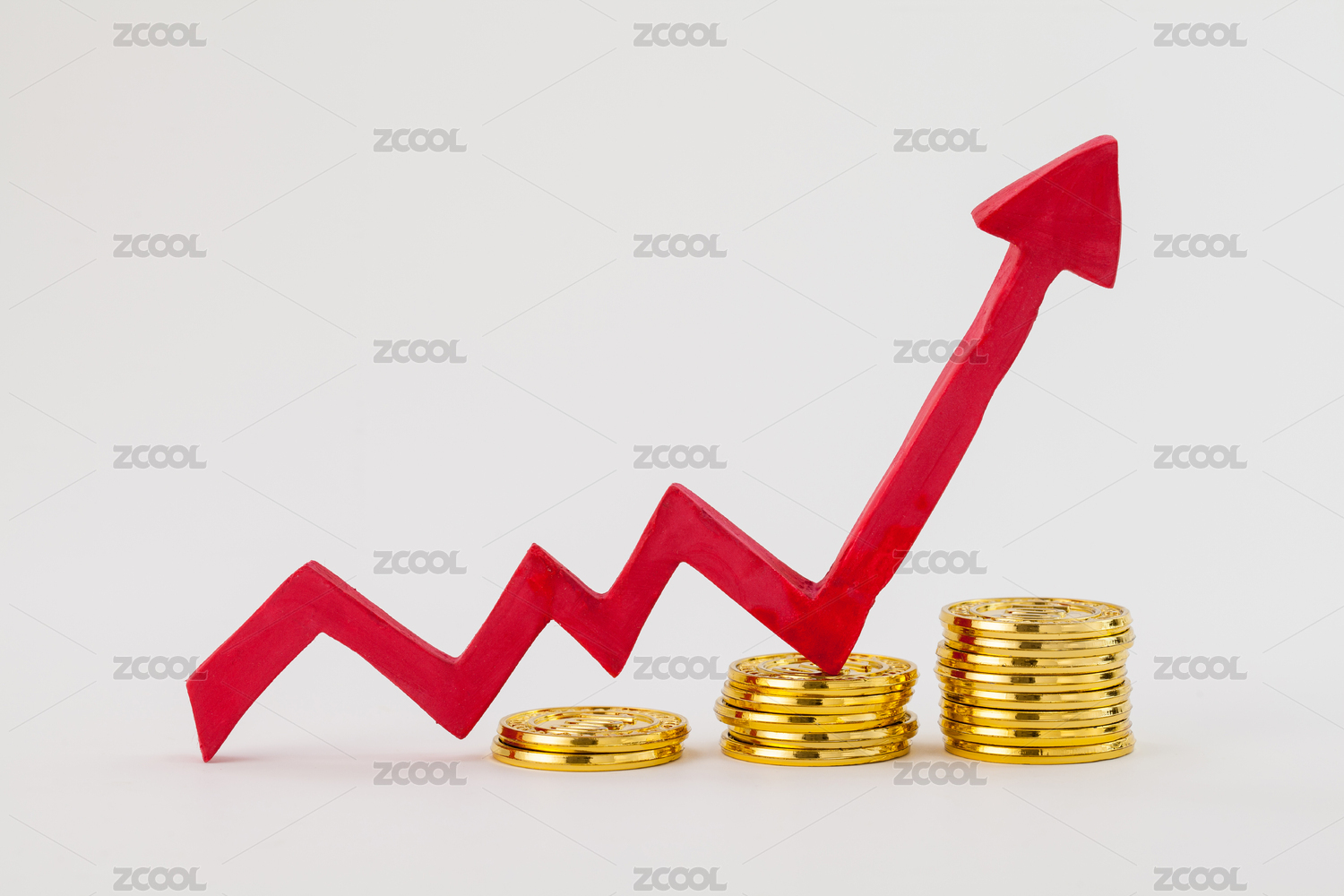 叠在金币上的上涨箭头素材图