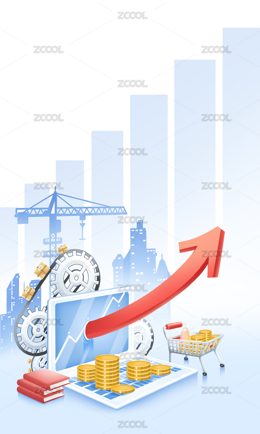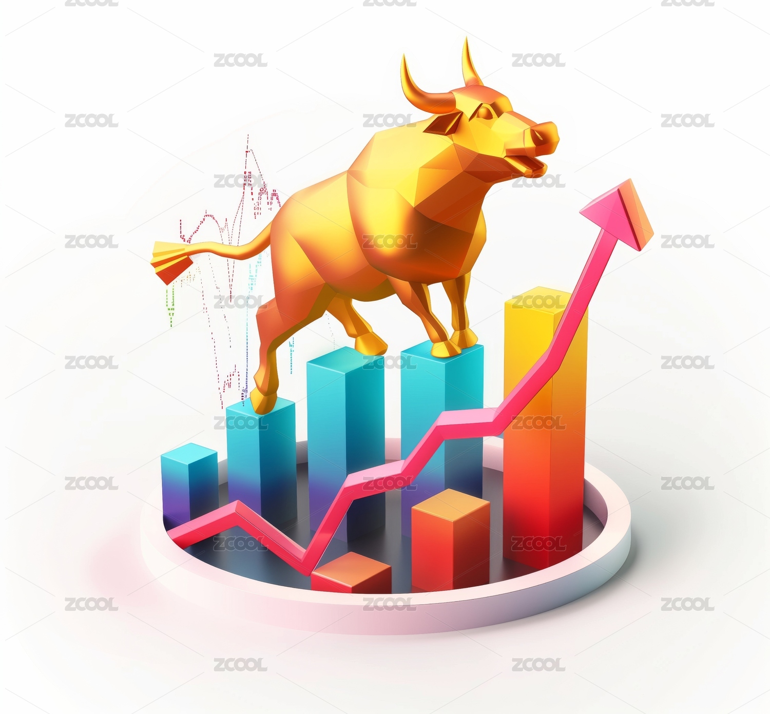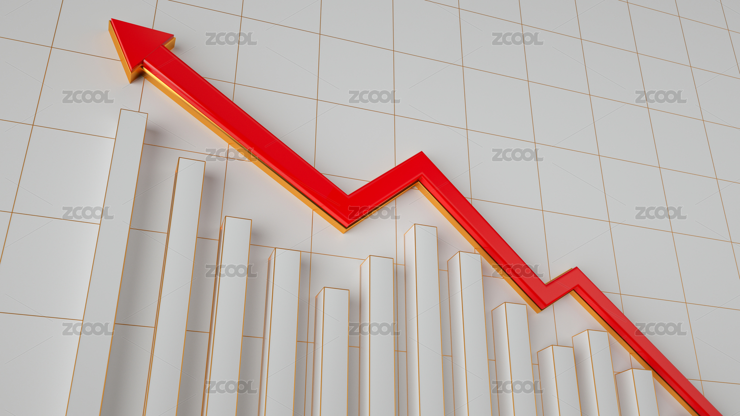 柱形图箭头向上上涨趋势3d背景