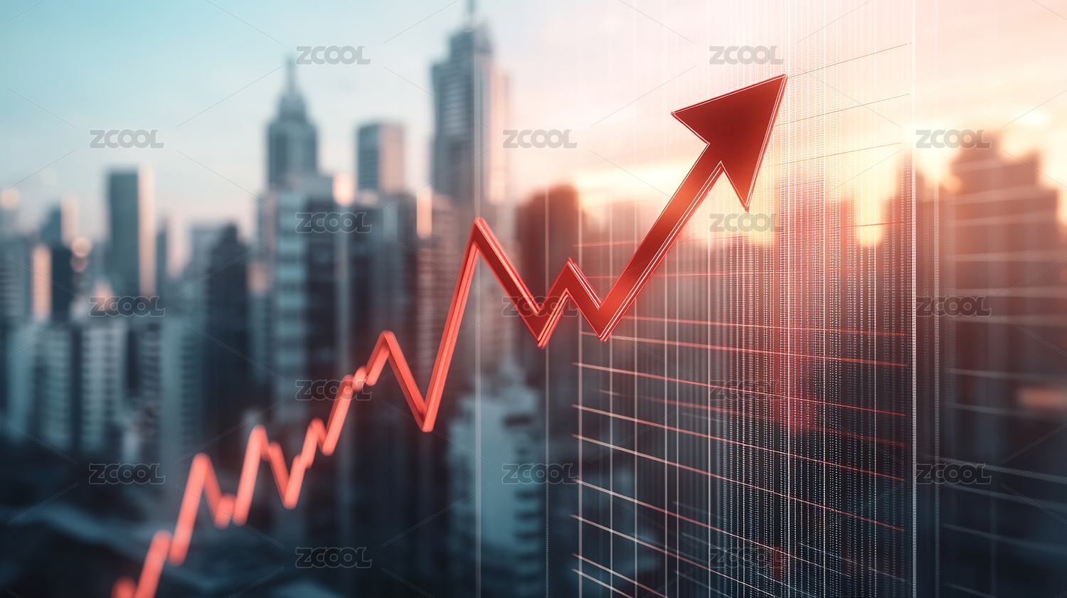 城市高楼和上涨箭头