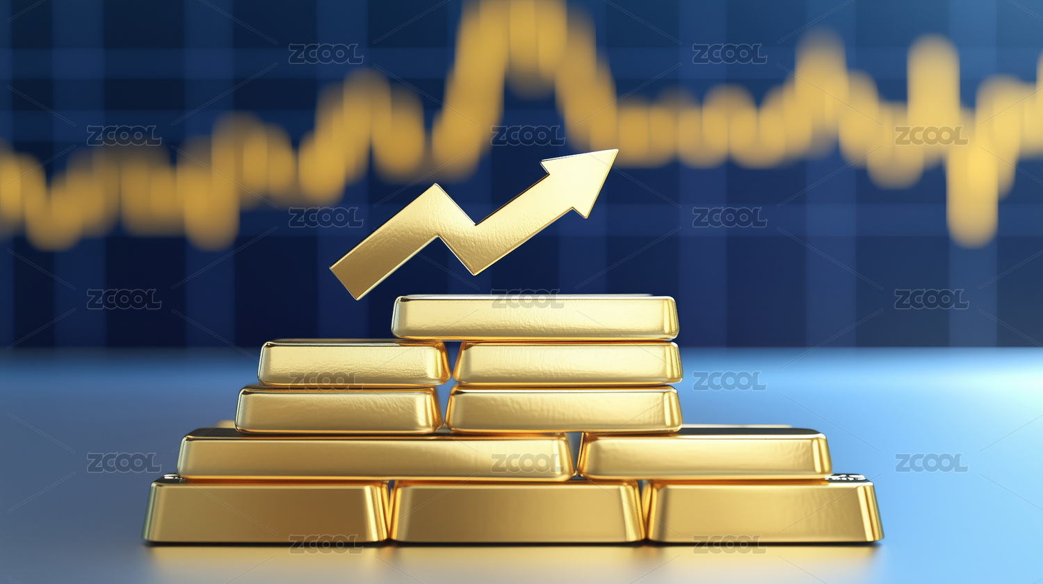 3D黄金上涨金融概念图