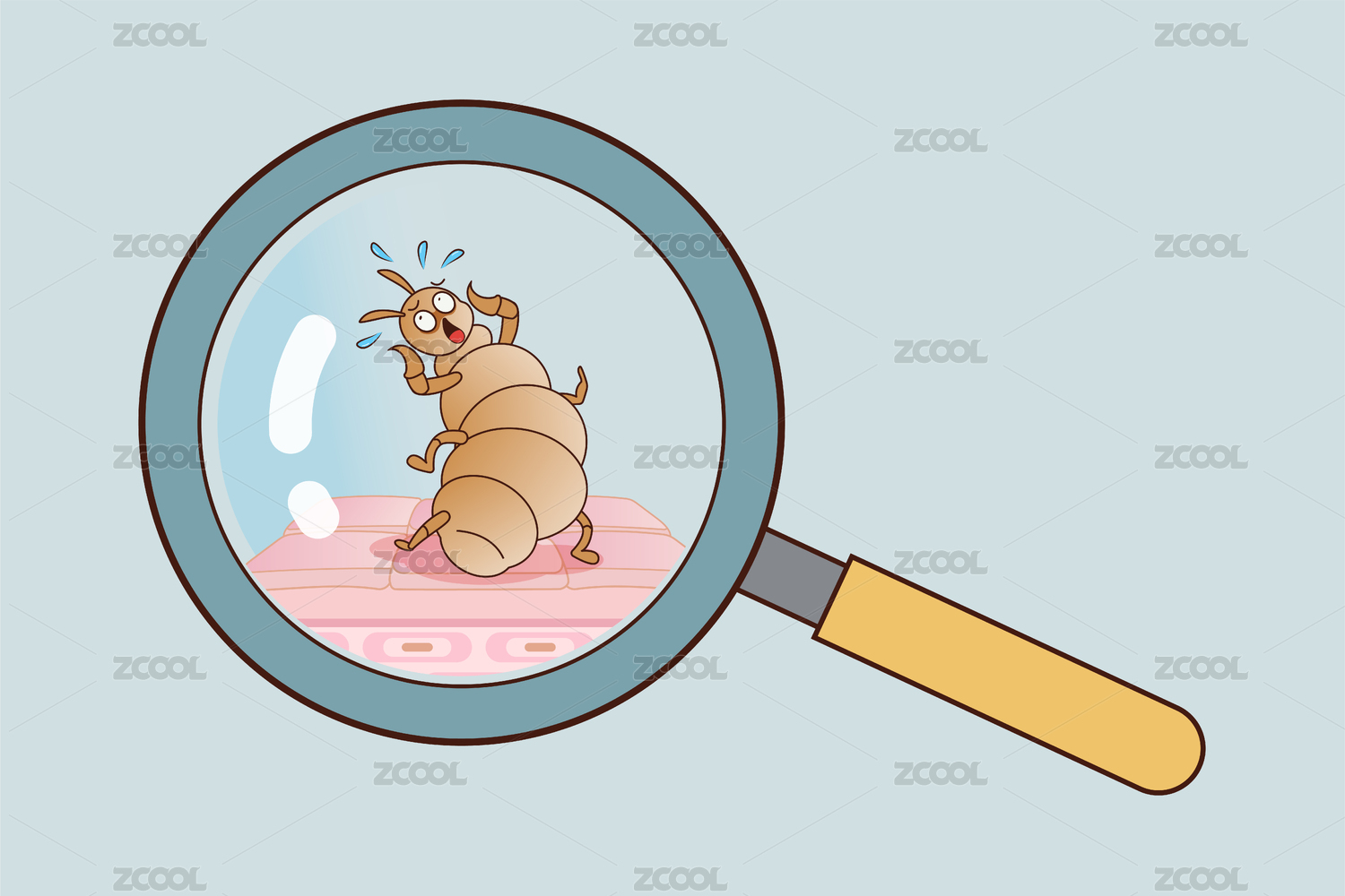 放大镜下发现皮肤上慌张逃跑流汗虫子