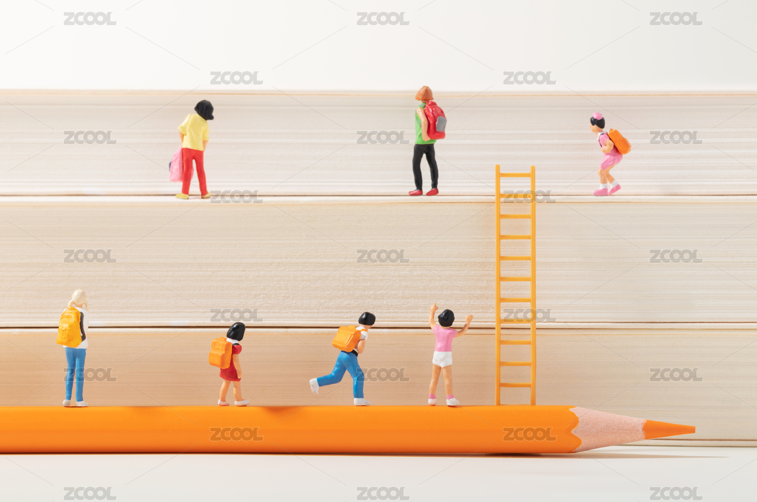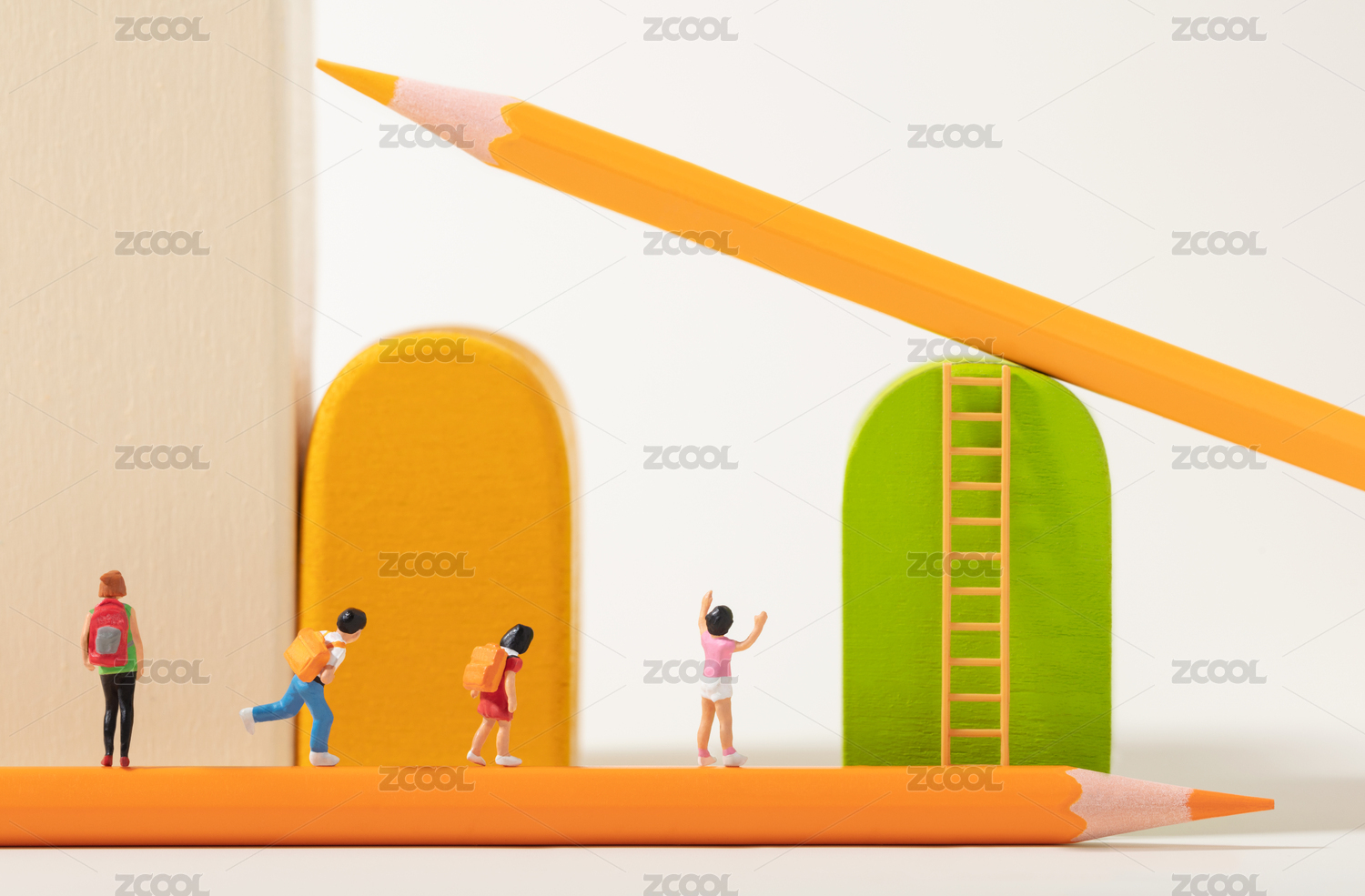 微缩创意教育主题学生与阶梯