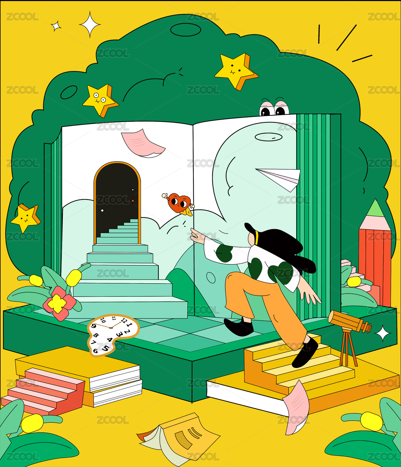 教育类书本阶梯奔向梦想清新插画