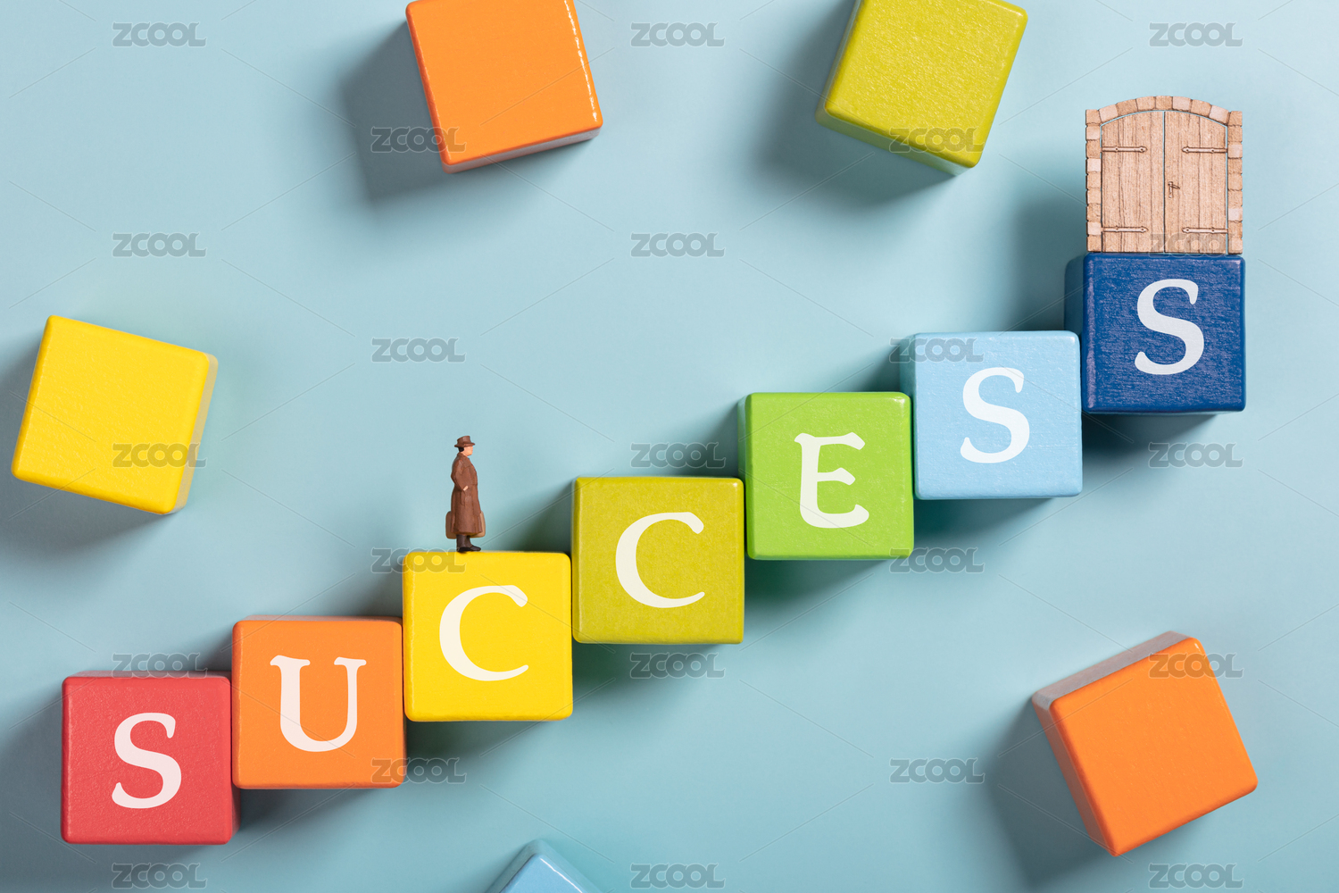 英文积木阶梯通往成功的道路彩虹桥
