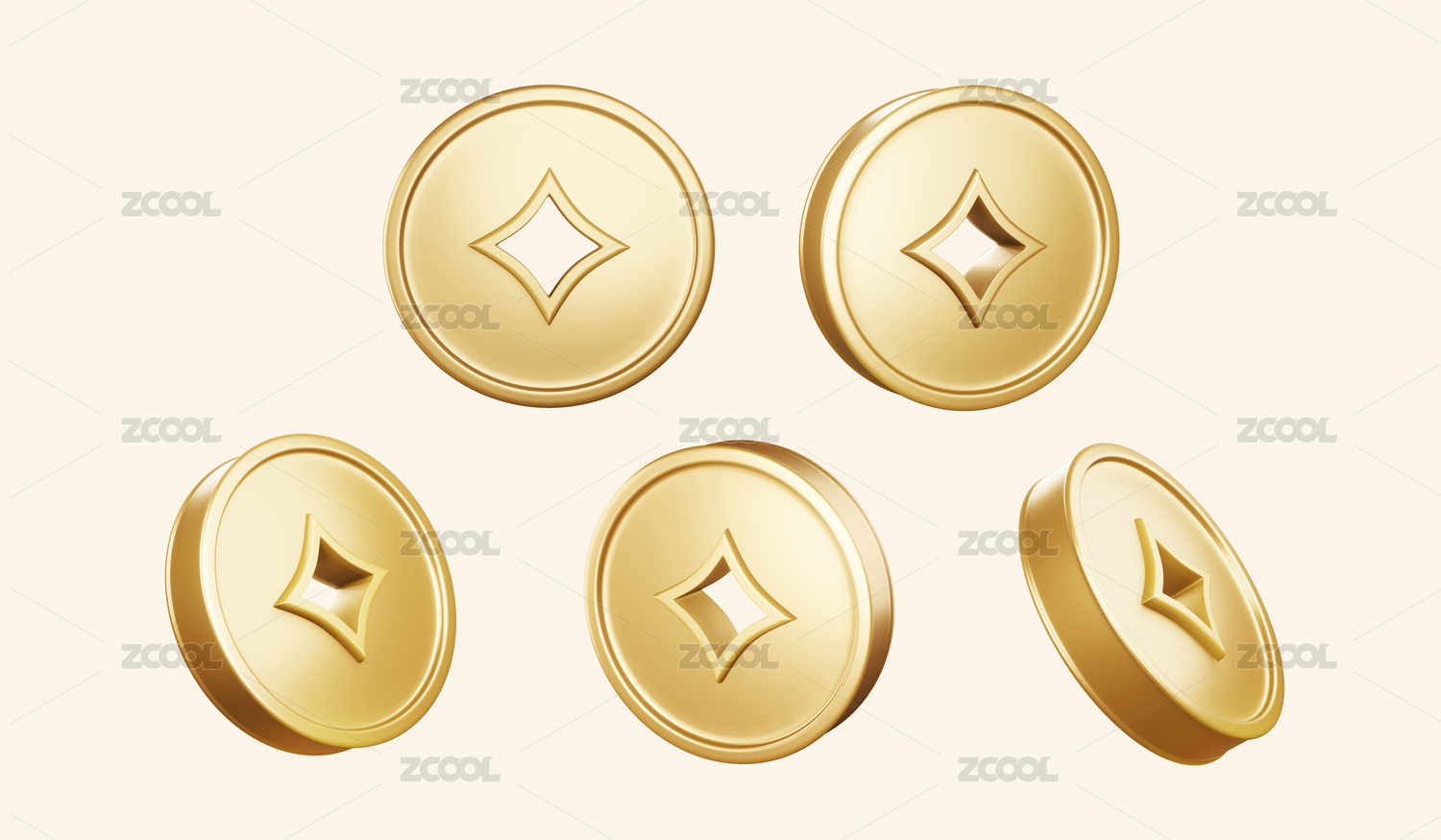 金币3D元素金融电商促销中式铜钱钱币插画