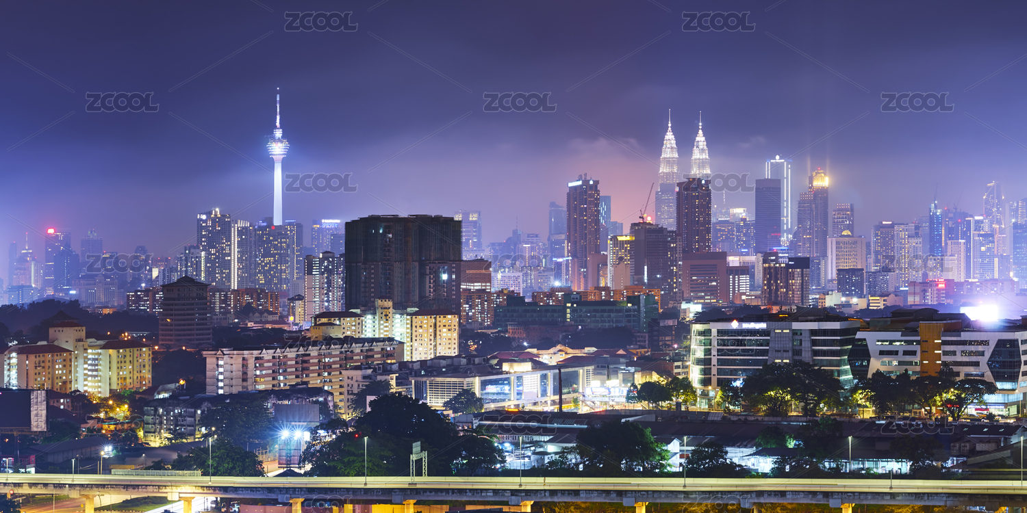 马来西亚吉隆坡双子塔城市建筑风光夜景