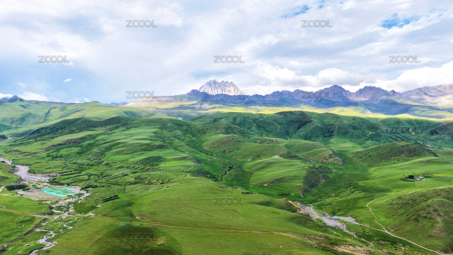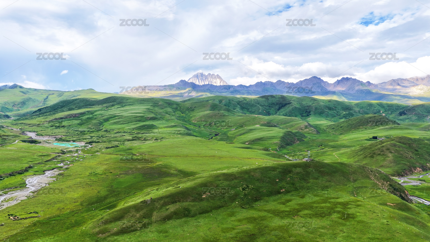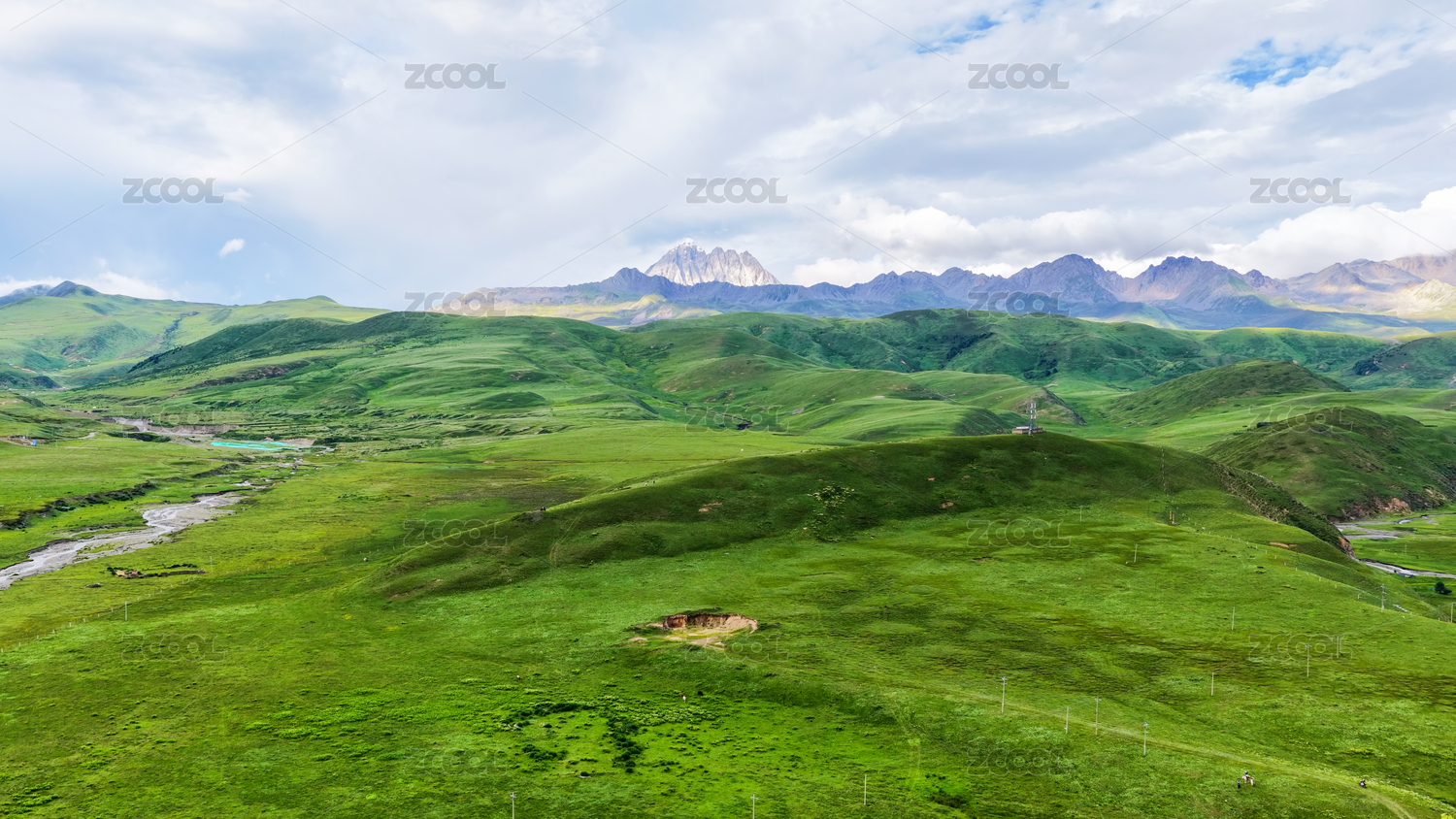 航拍川西甘孜州康定塔公草原雅拉雪山风光