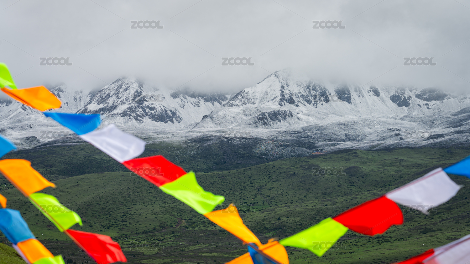 新都桥塔公草原观景台看雅拉雪山和青绕神山