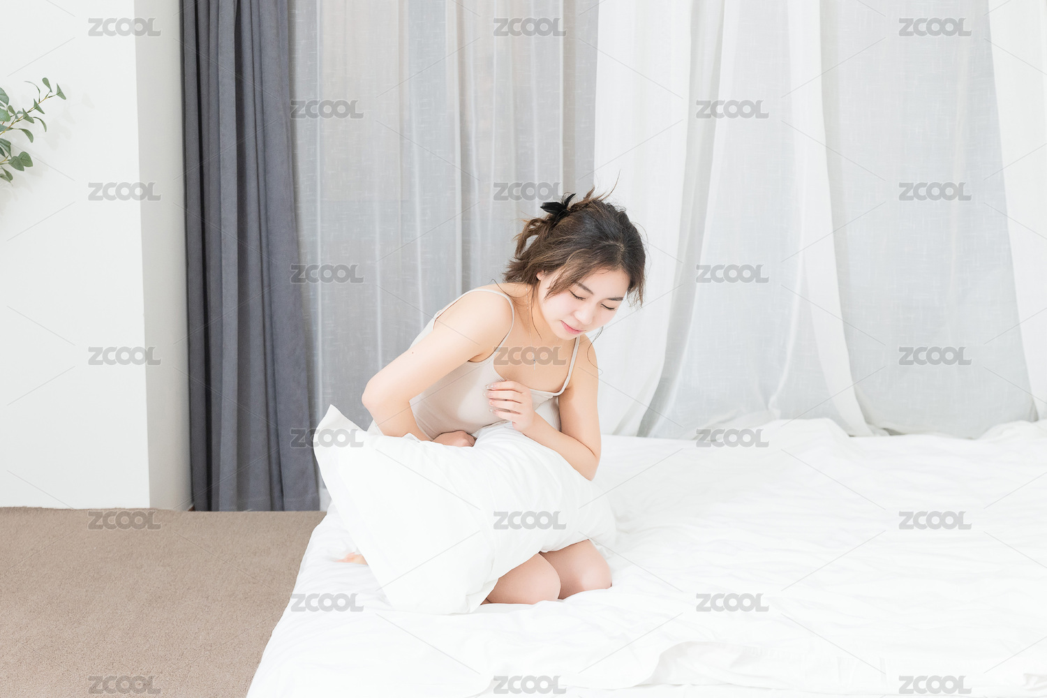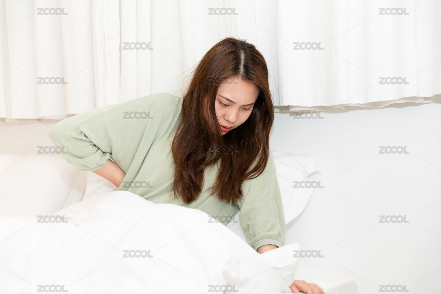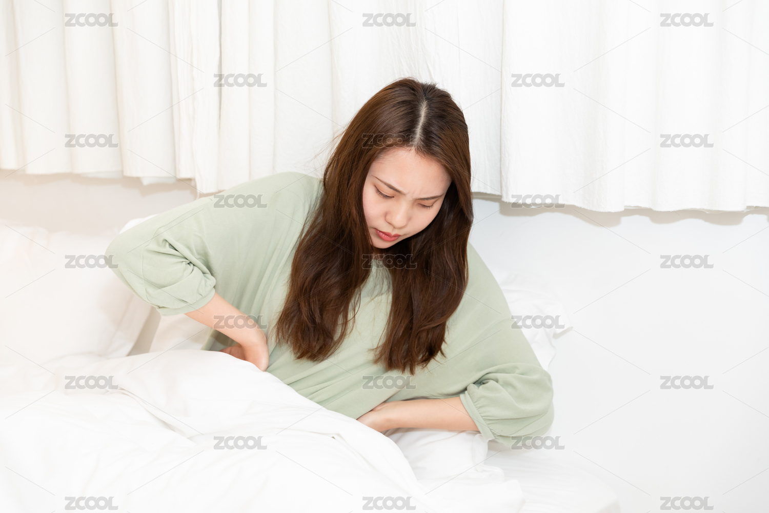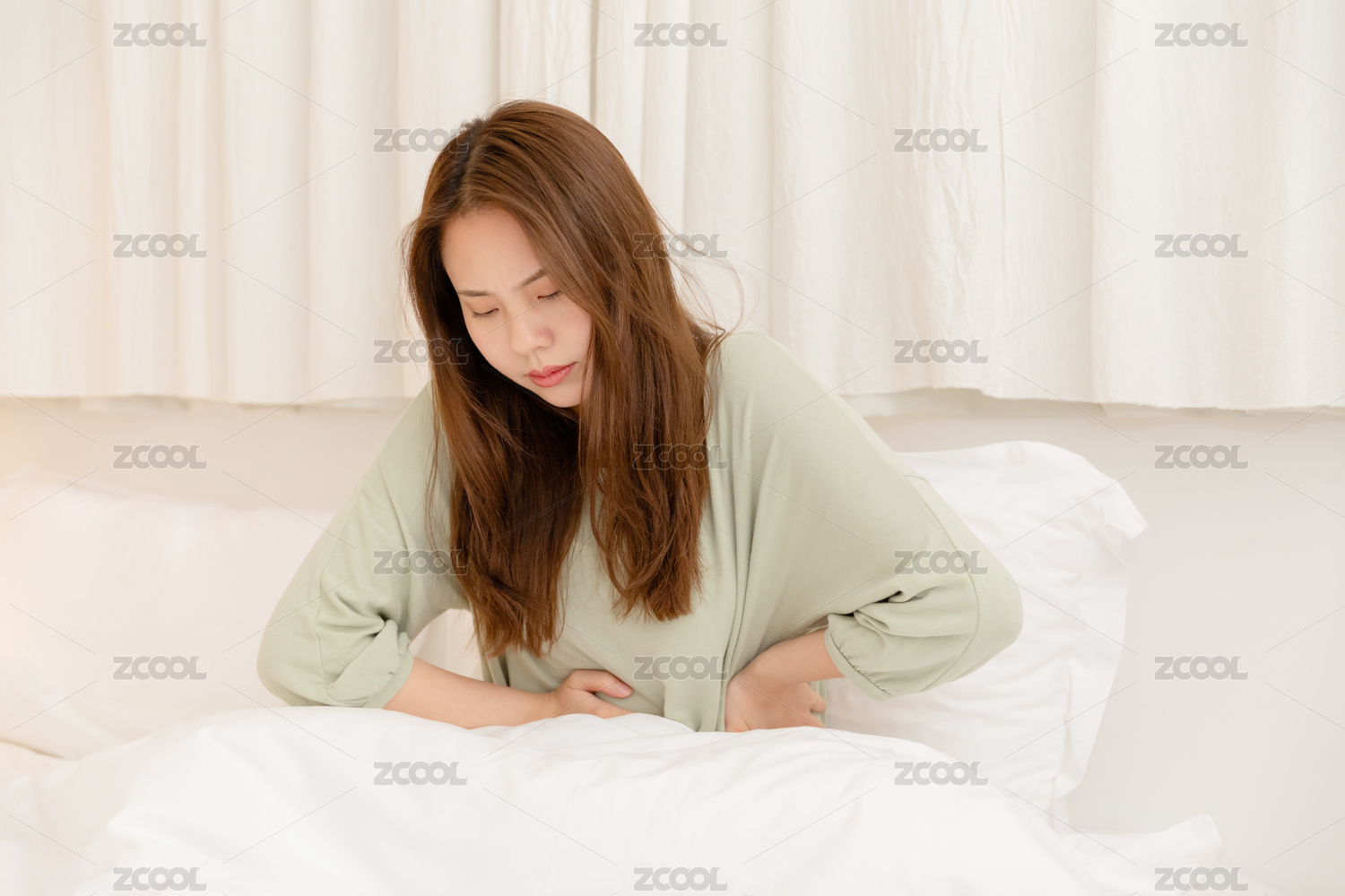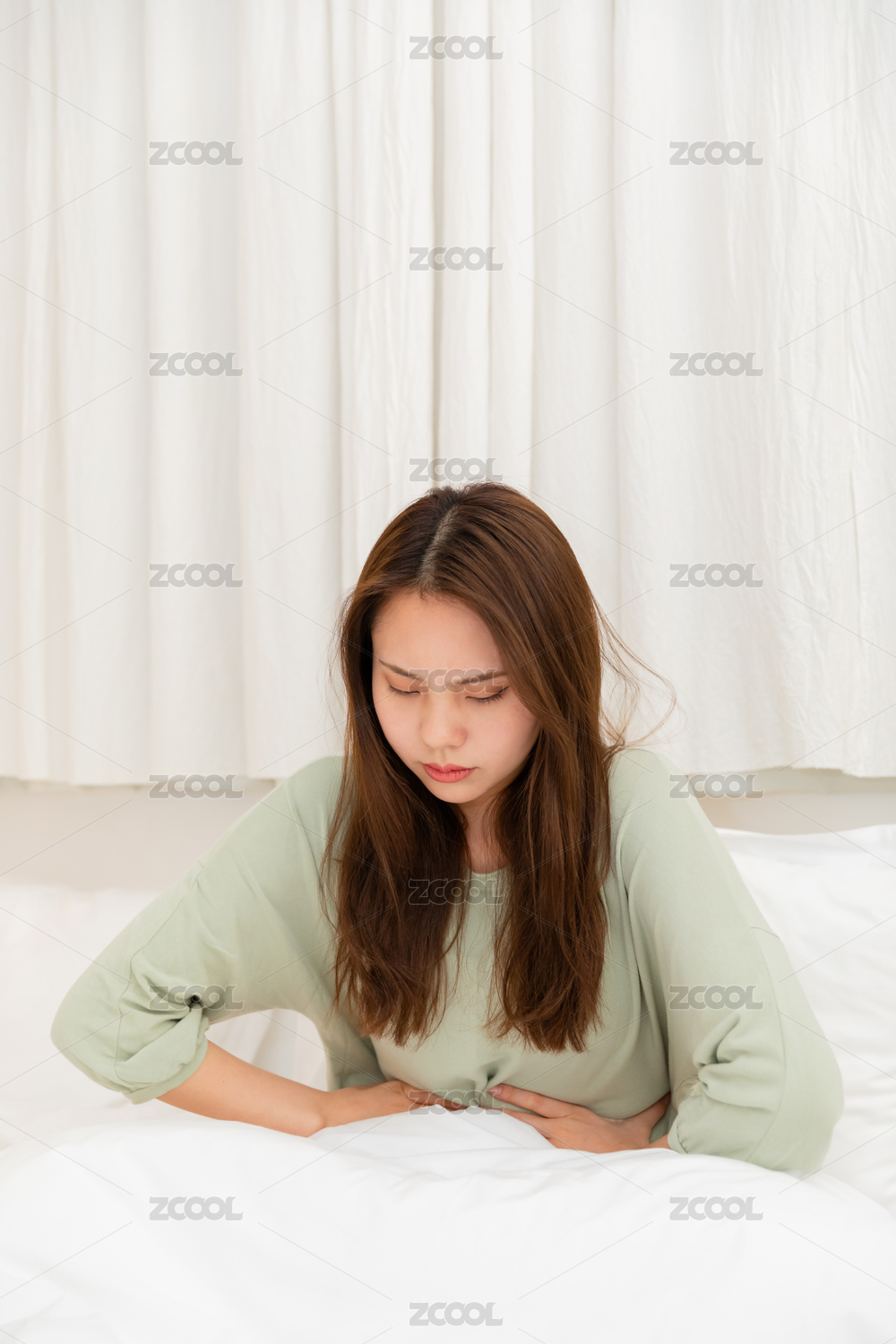 一个在床上肚子疼的东方女人