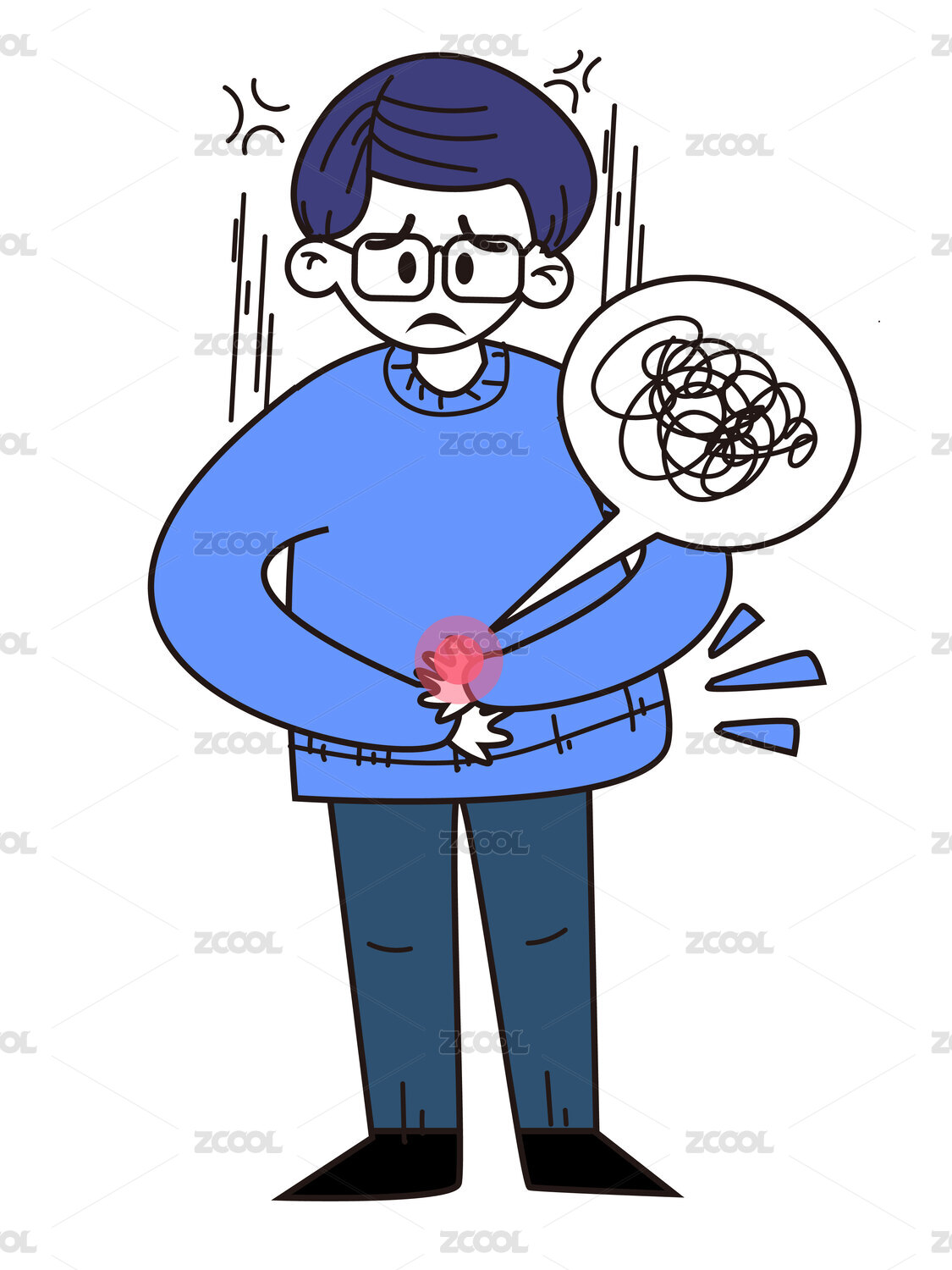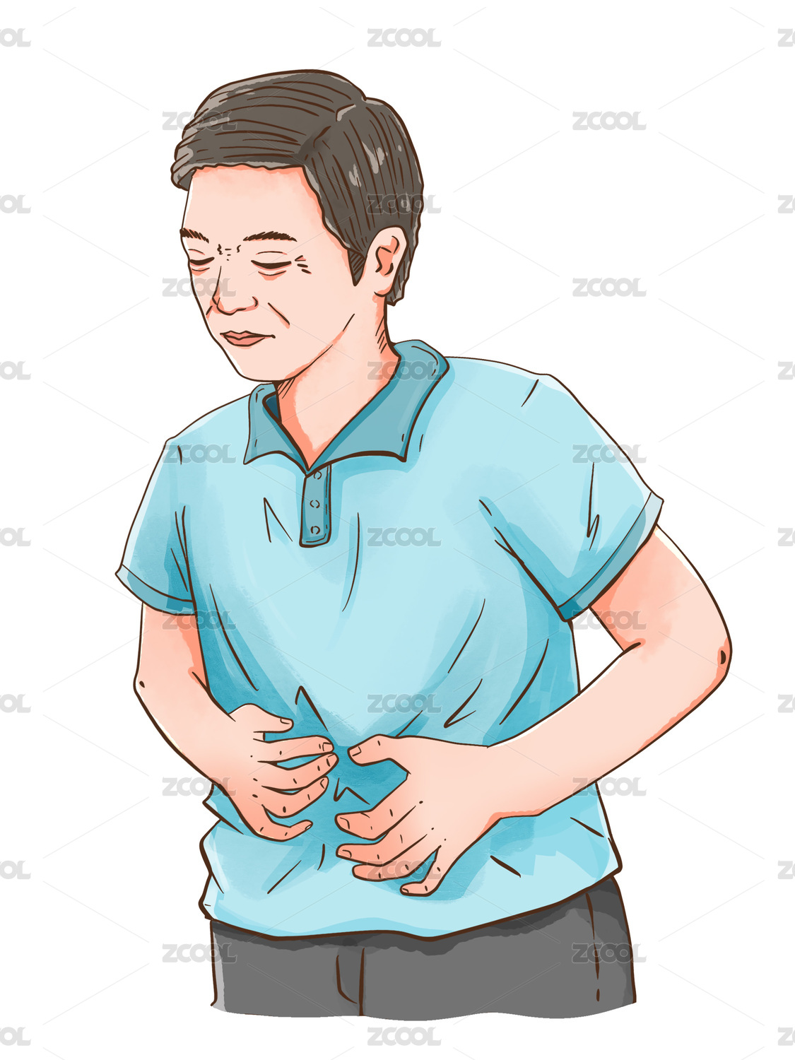 手绘胃疼肚子疼职业病医疗健康保健人物插画