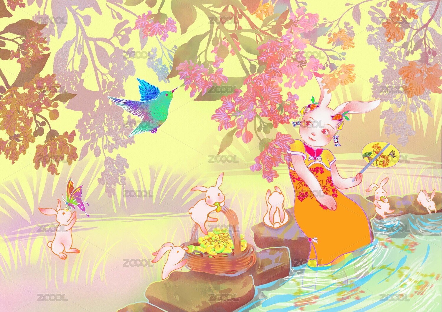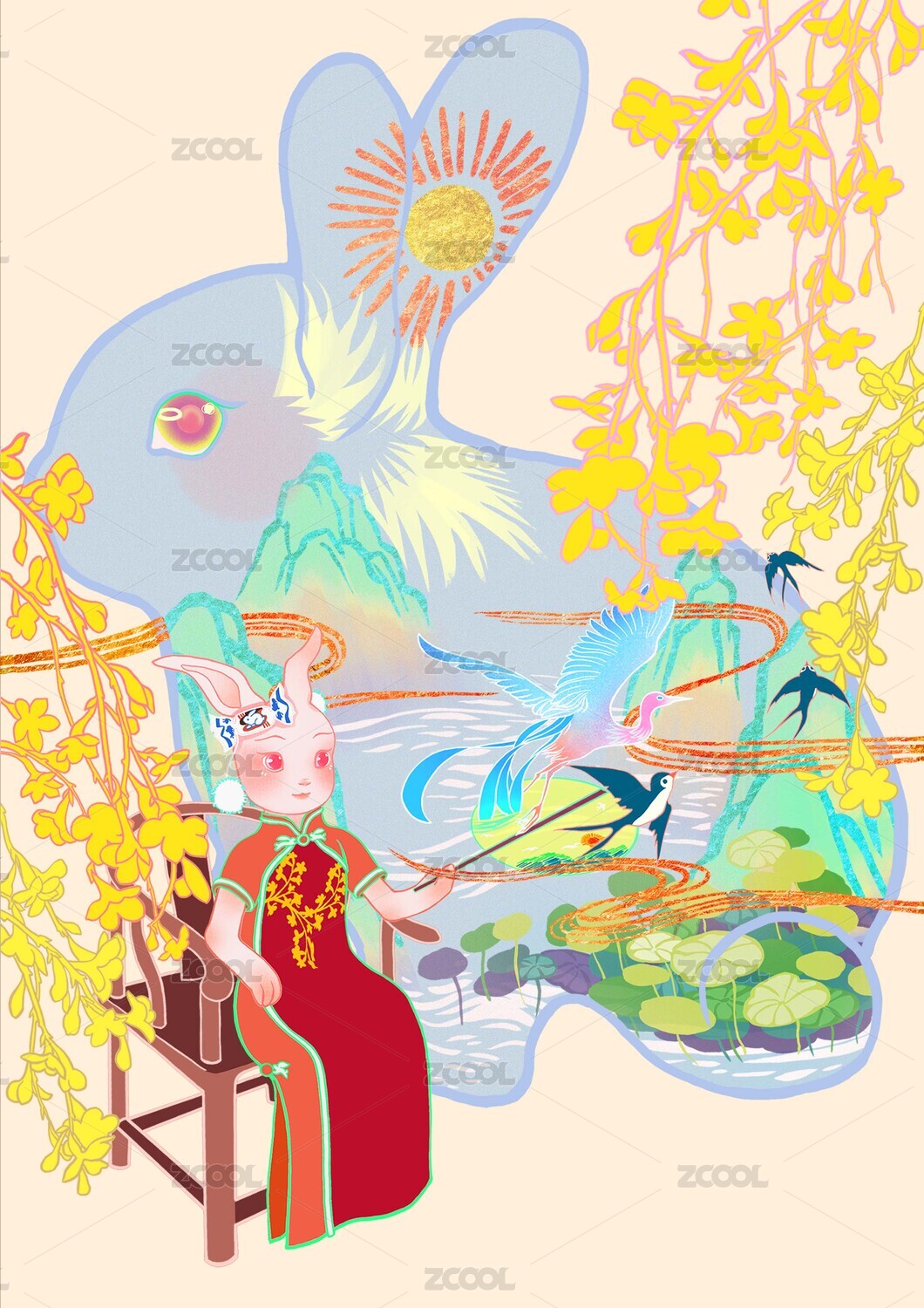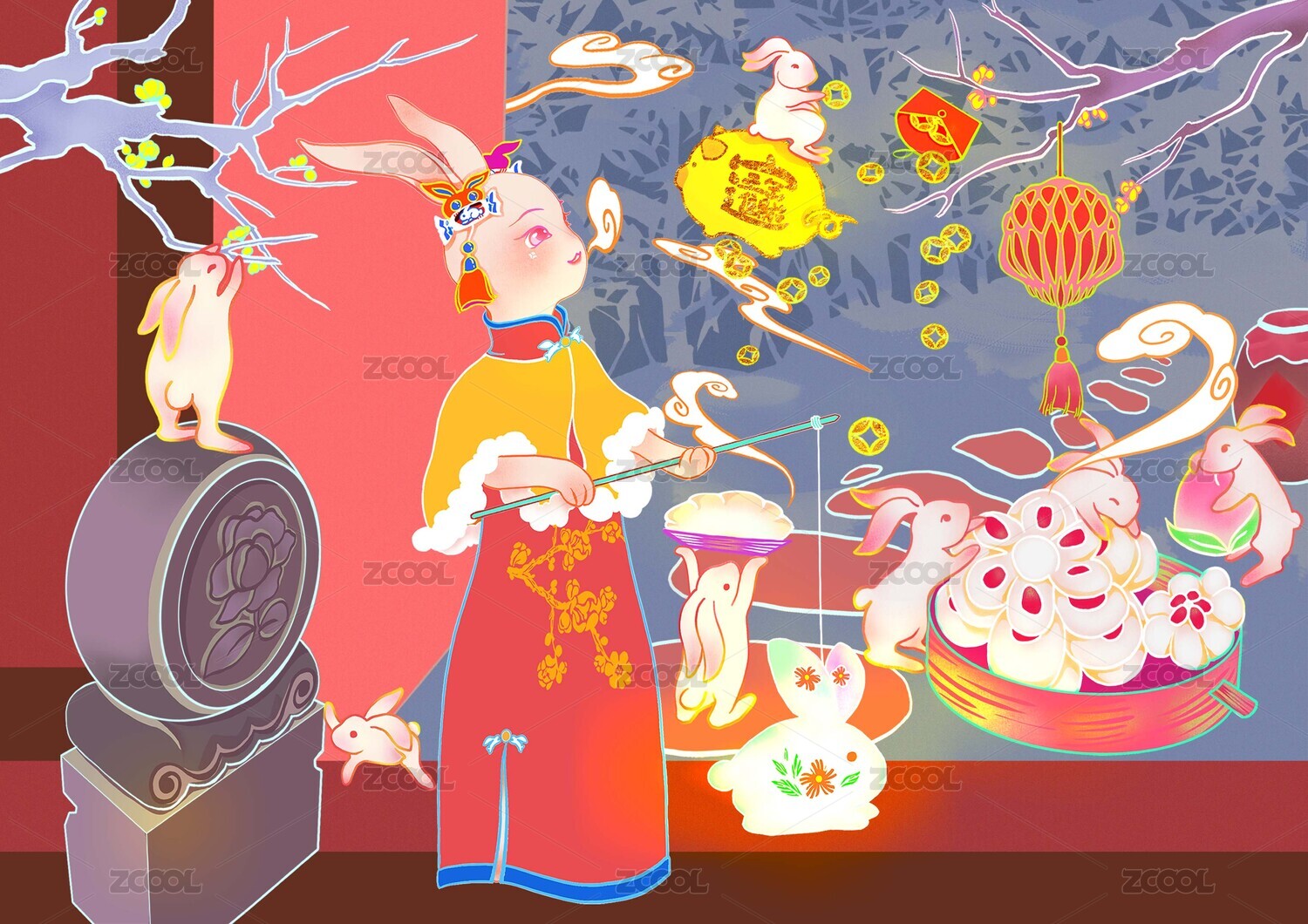 兔年兔子国潮矢量插画