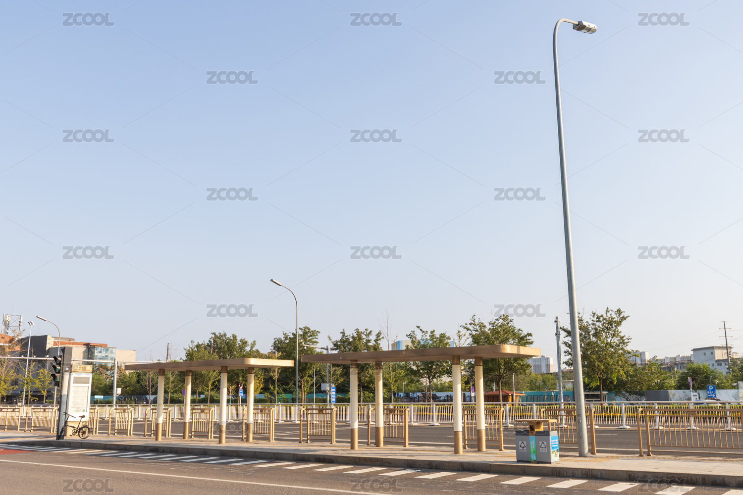 蓝天白云下的公交站台