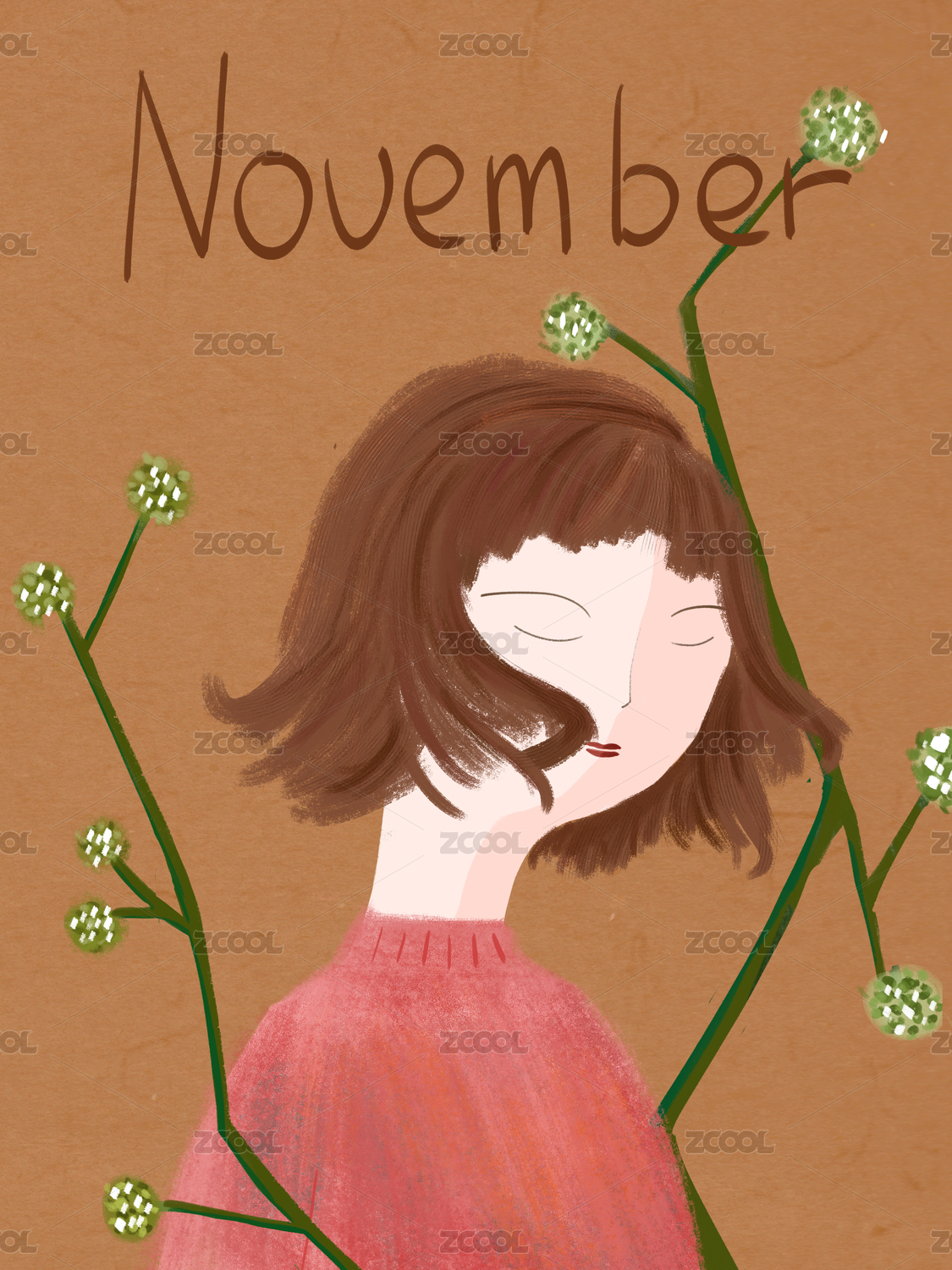 十一月立冬屏风山石笔筒红山茶花祥云国风插画