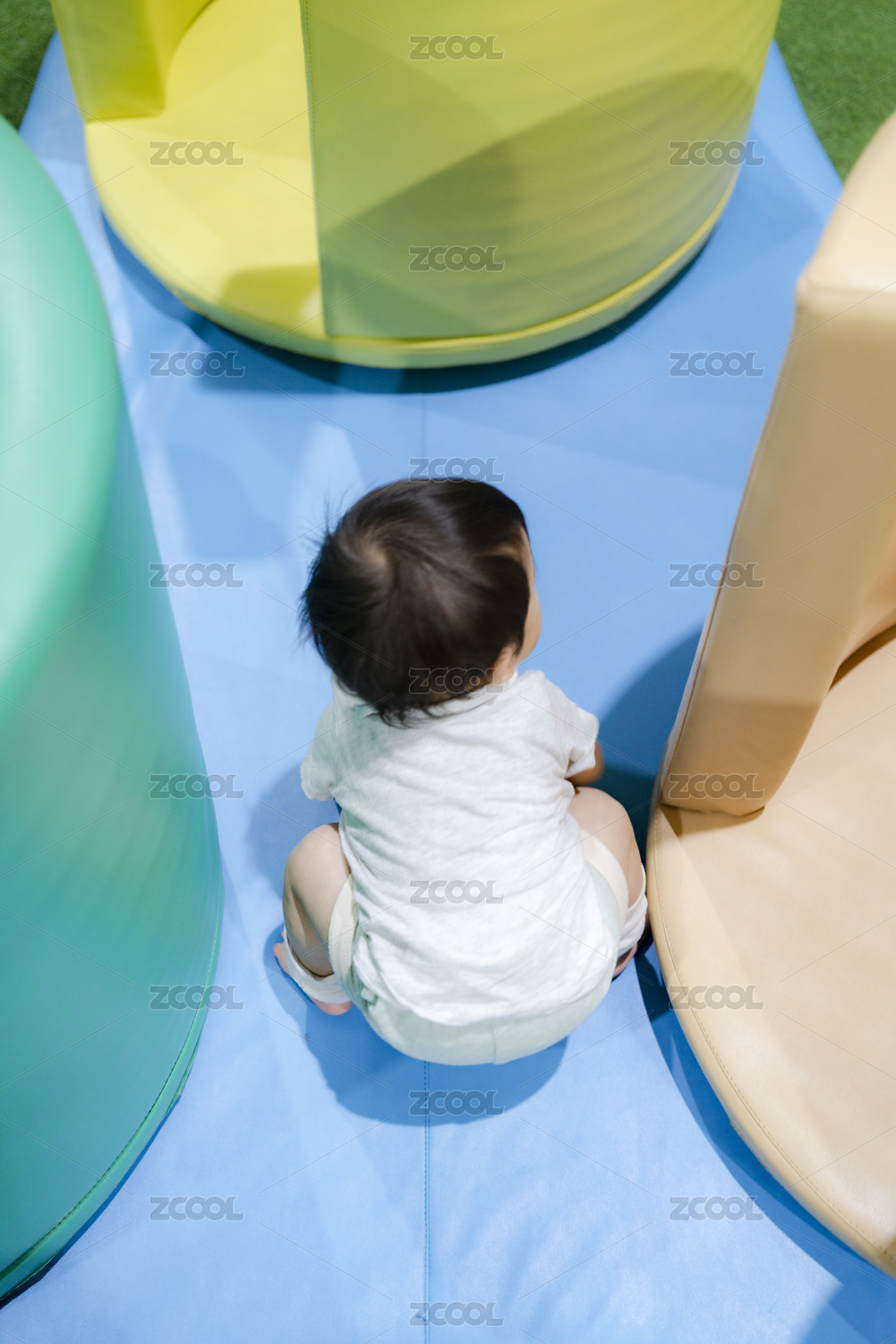 坐在婴儿乐园迷宫中的十一月龄宝贝