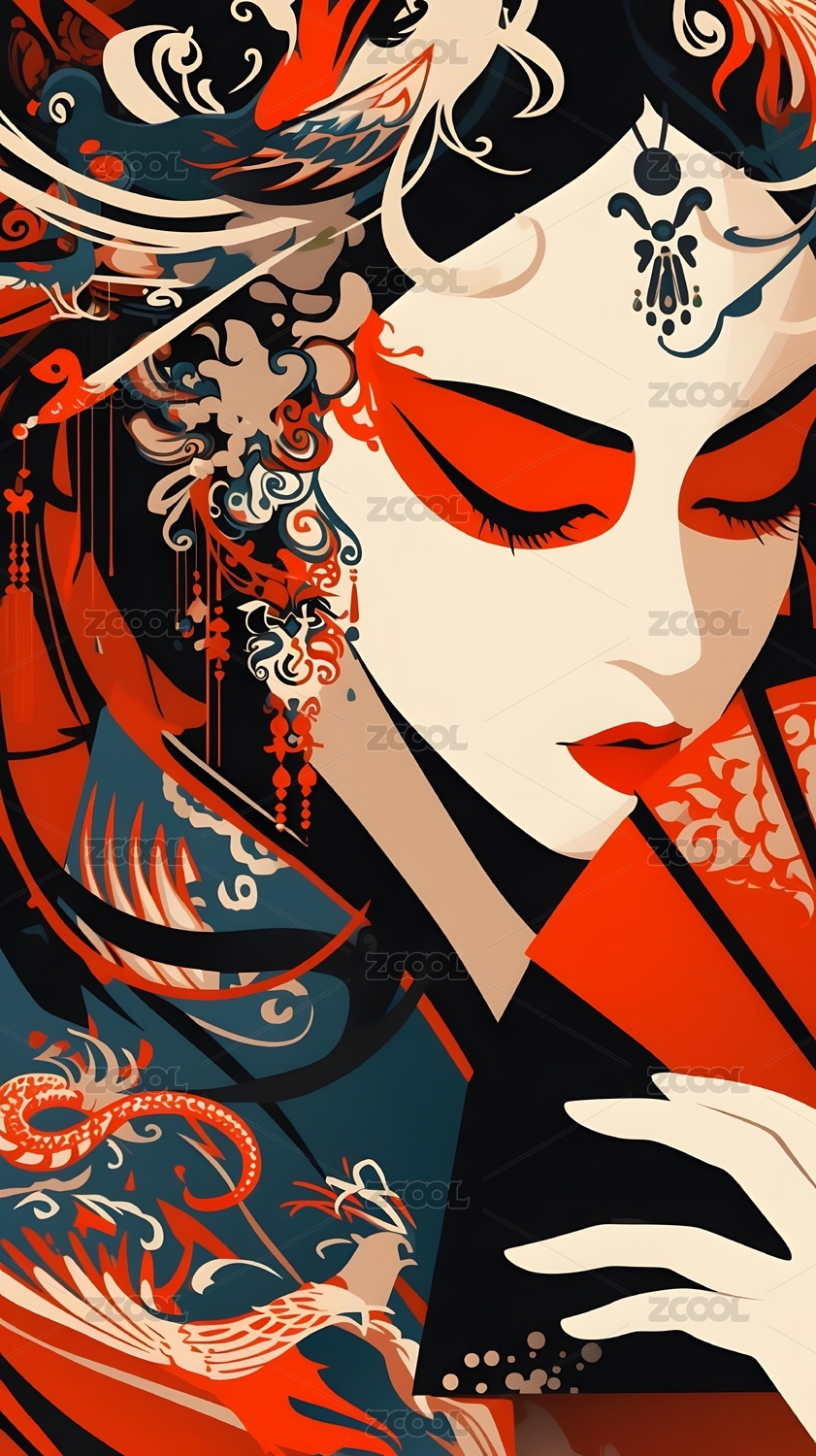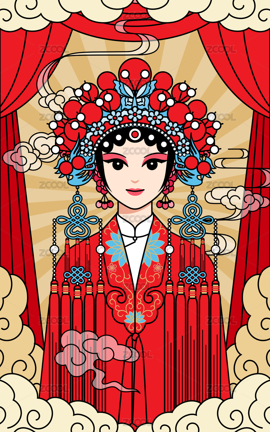 戏曲花旦国潮风插画