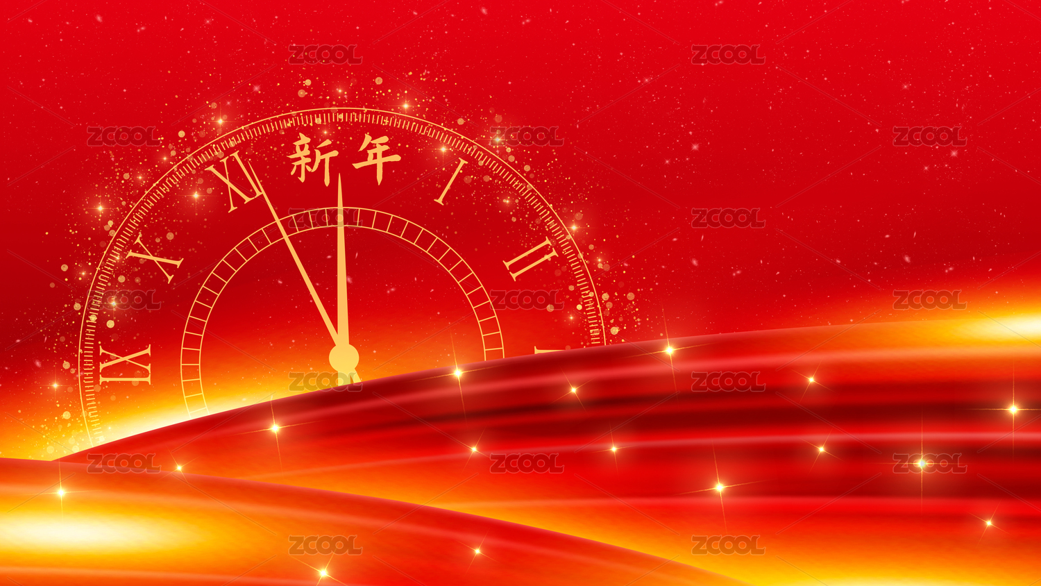 春节新年倒计时喜庆星光点点红色时钟