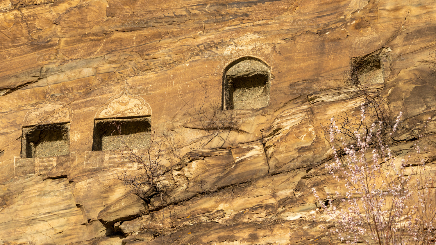 北京首钢园区石景山峭壁上的僧人崖墓石龛