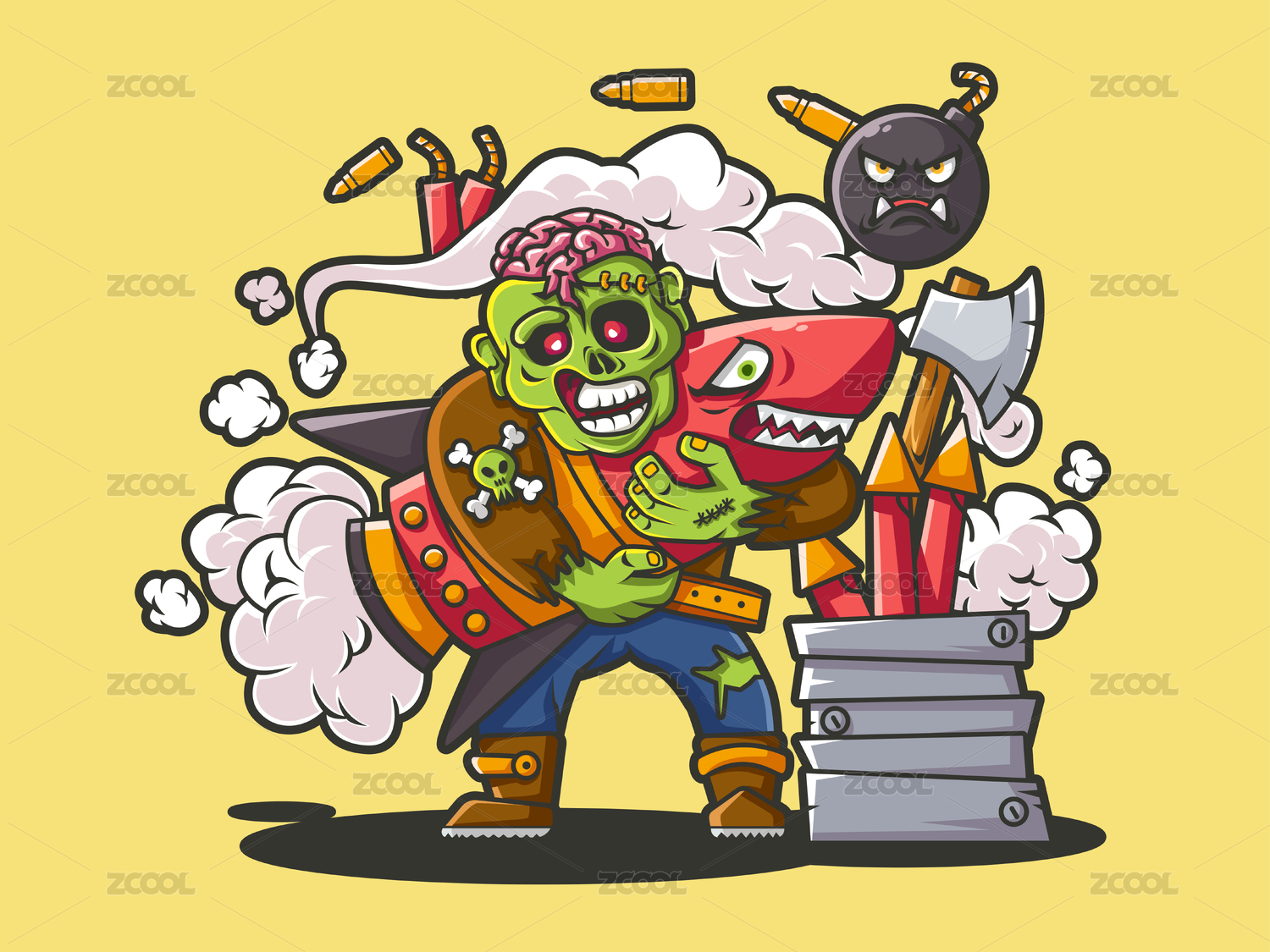 手拿火箭弹的僵尸不停在咆哮矢量插画