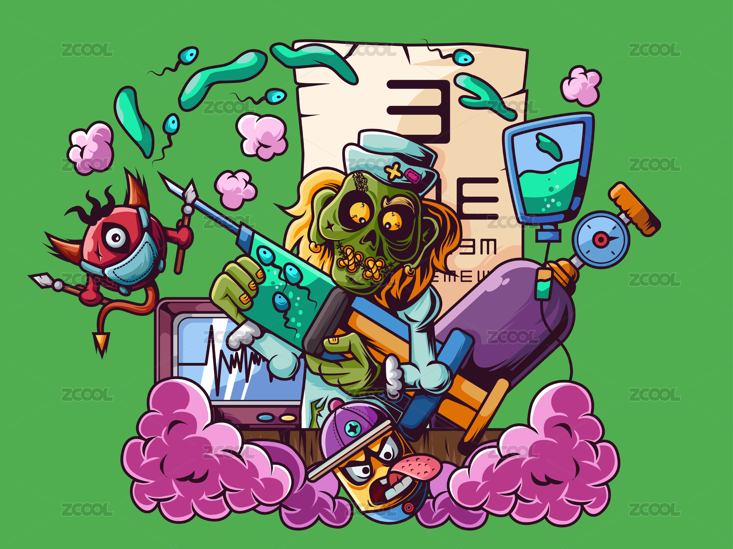 手拿针筒的护士僵尸正在注射病毒的危险矢量插画