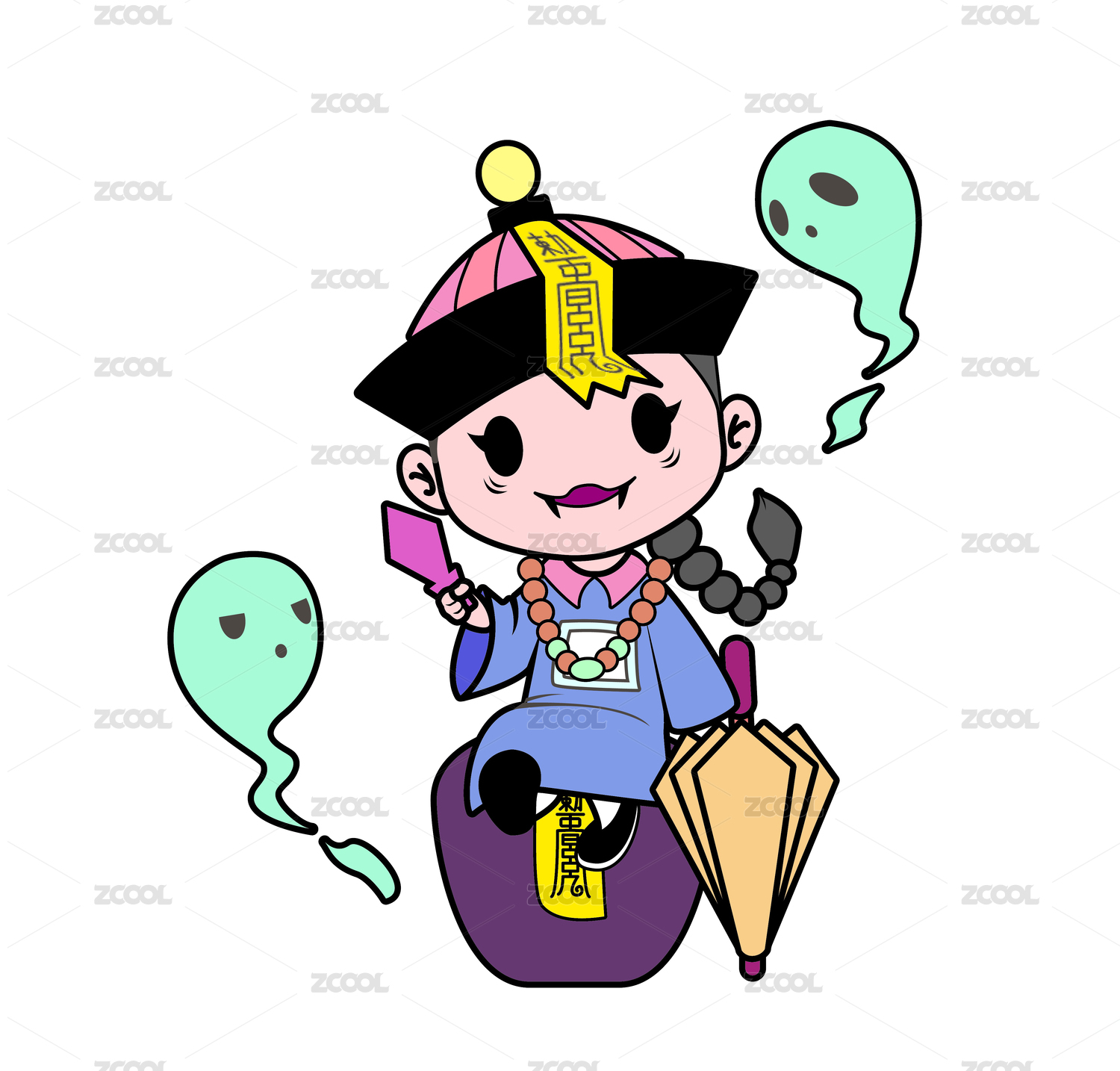盂兰节中元节中国风可爱矢量僵尸蝙蝠鬼节