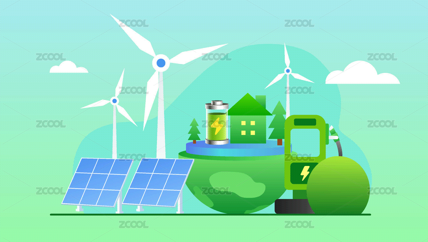 2.5D科技环保节能低碳绿色生活插画