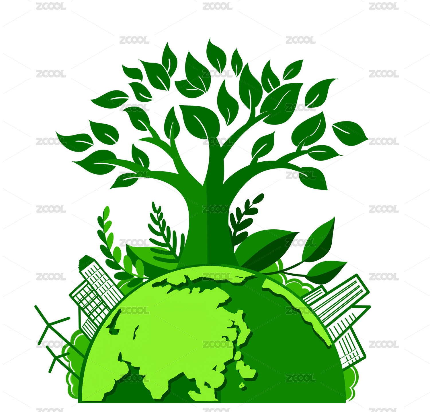 环保节能绿色生活矢量插画