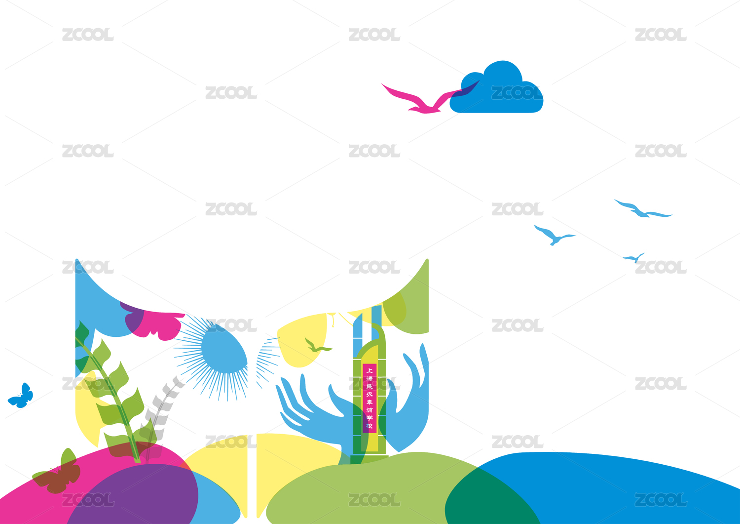 卡通手绘绿色生活环保节能剪纸插画