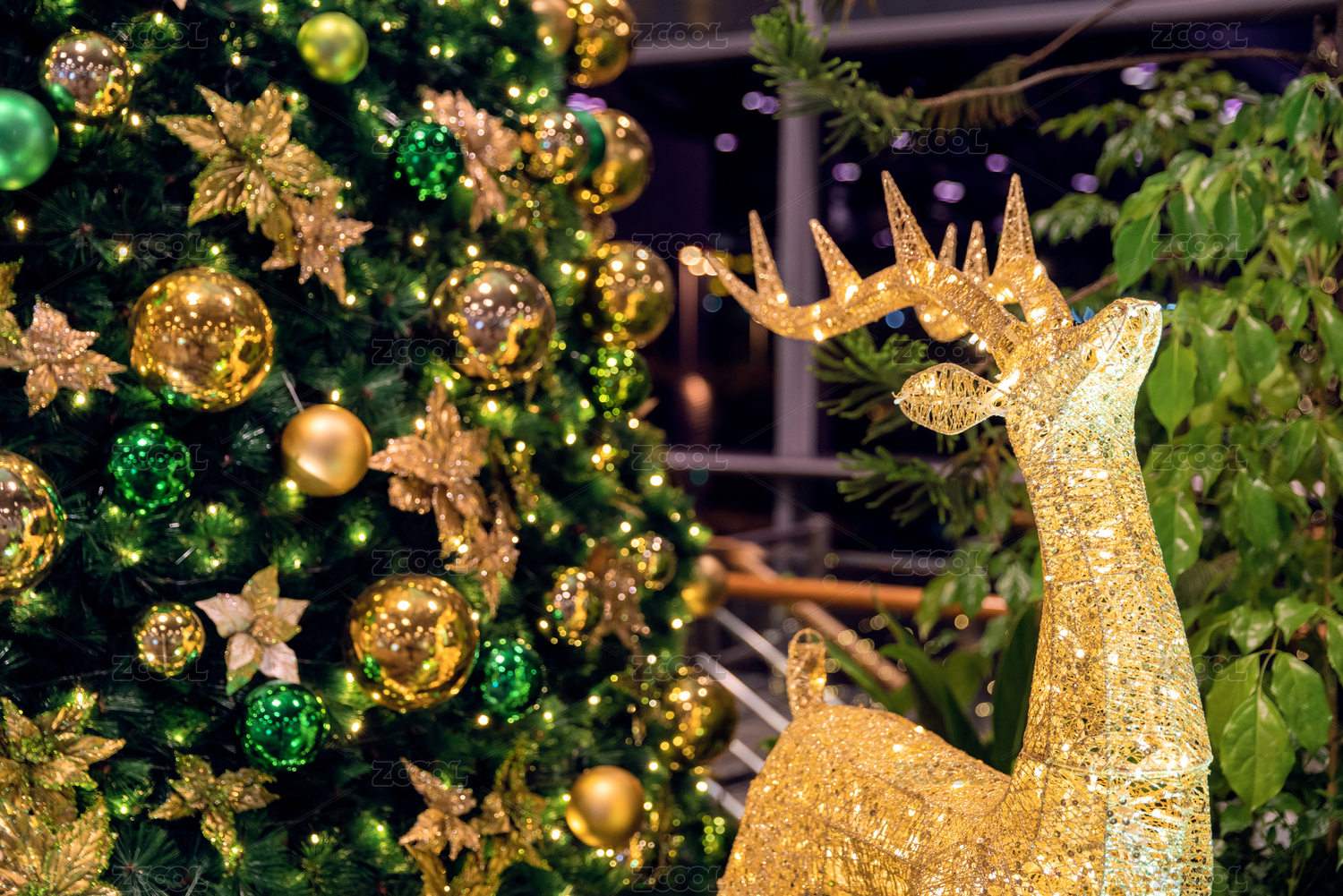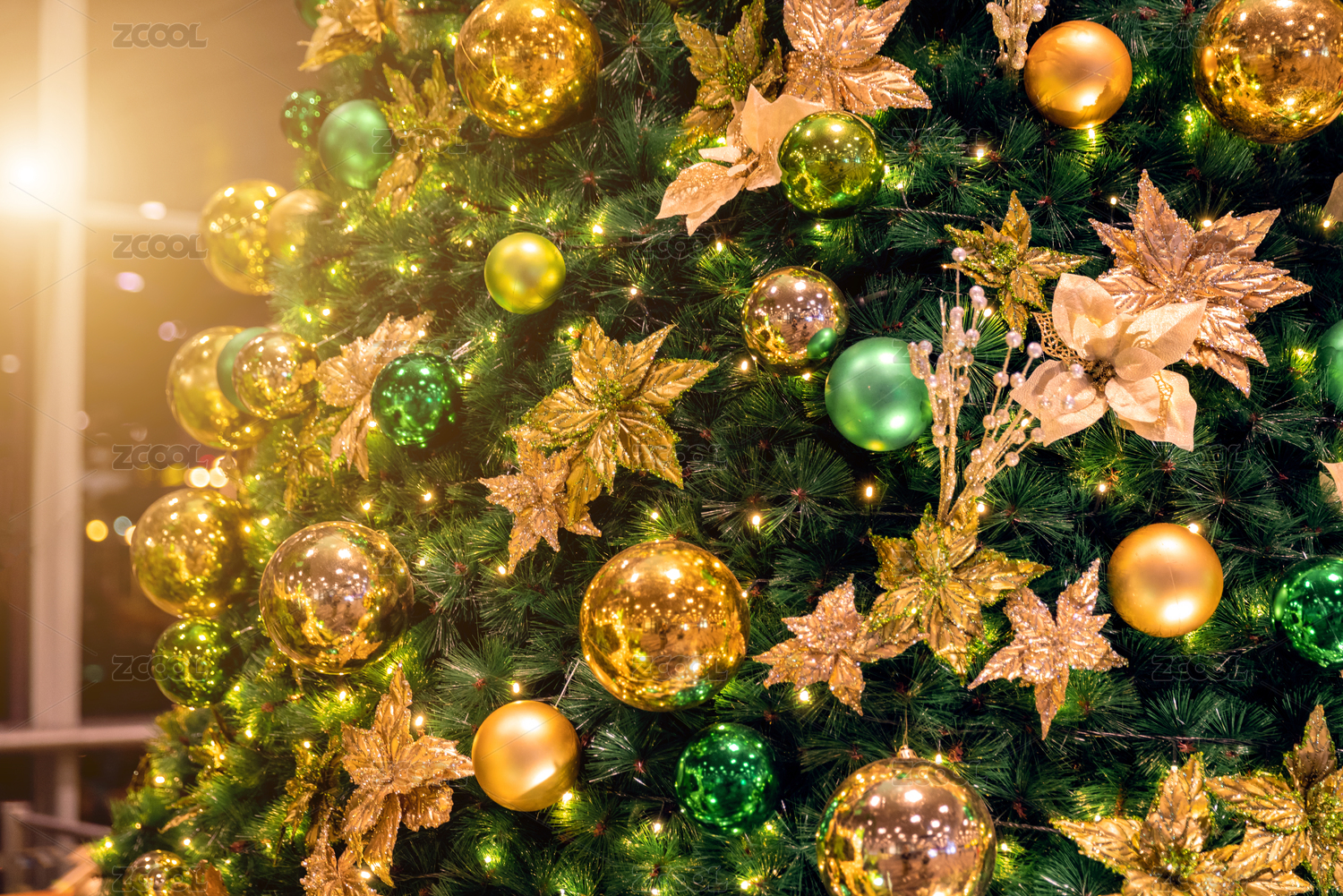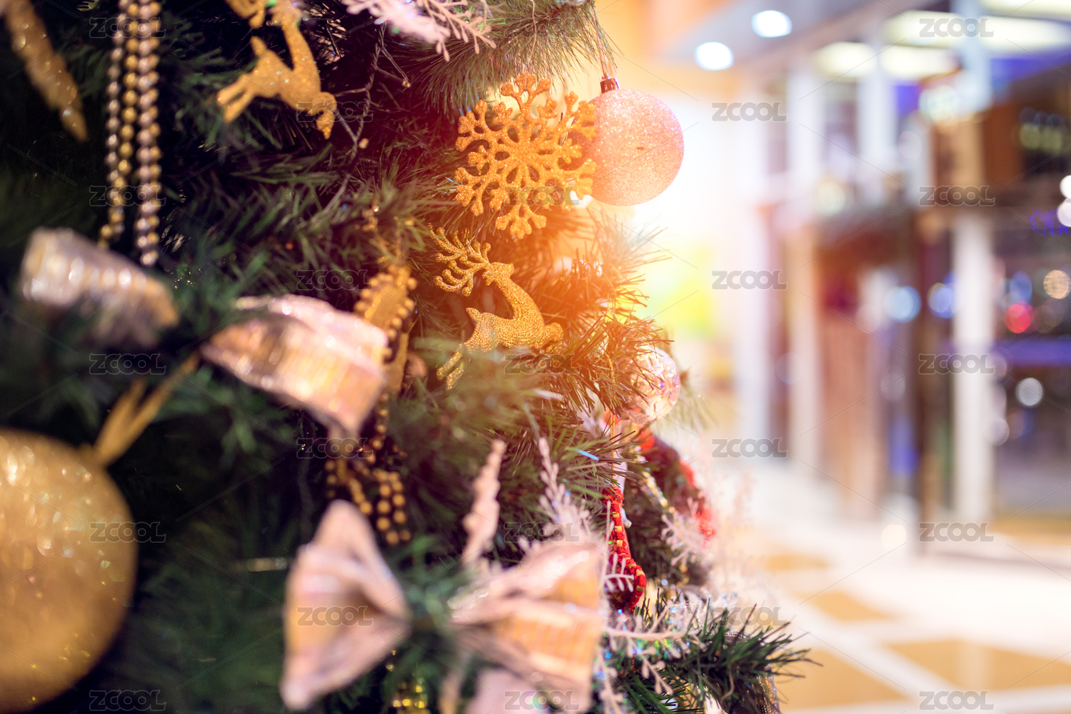 圣诞节期间具有节日气氛的圣诞树装饰