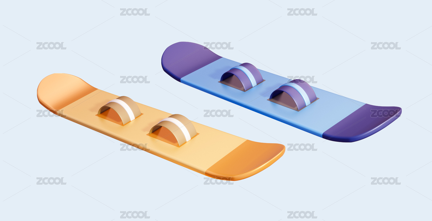 3d卡通冬季滑雪运动滑雪板插画元素