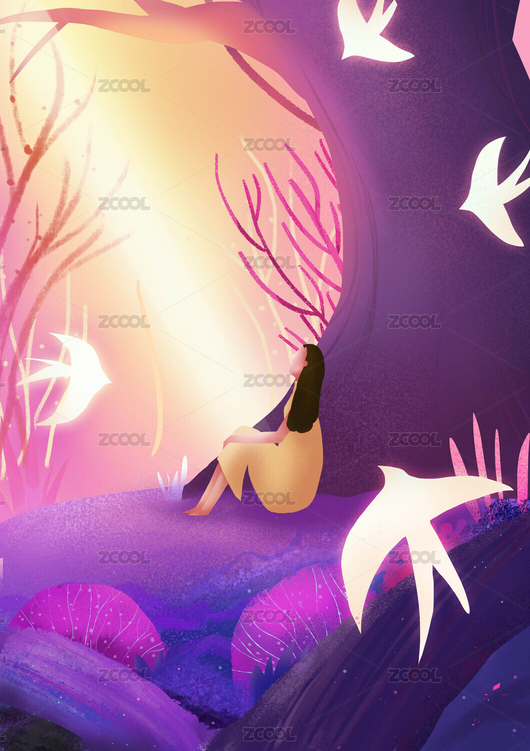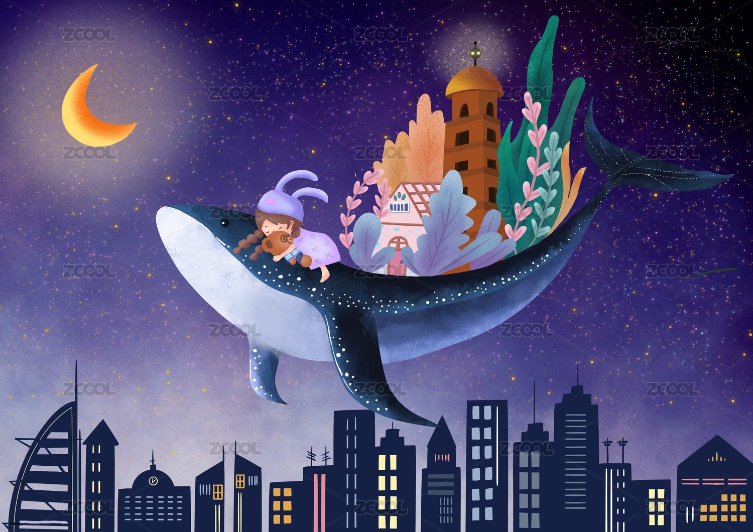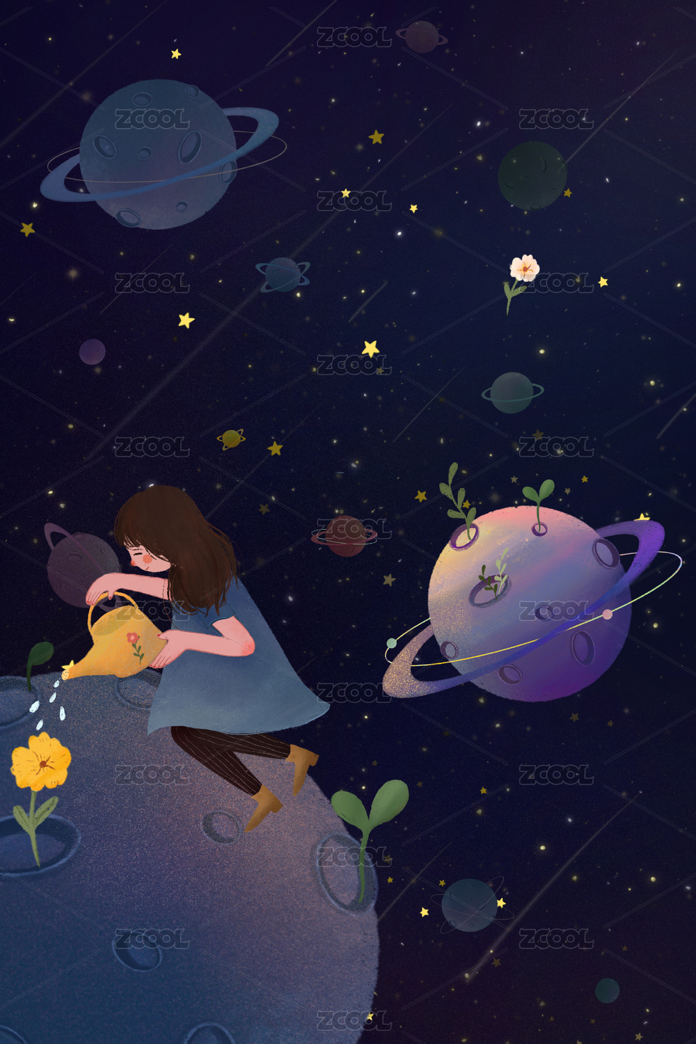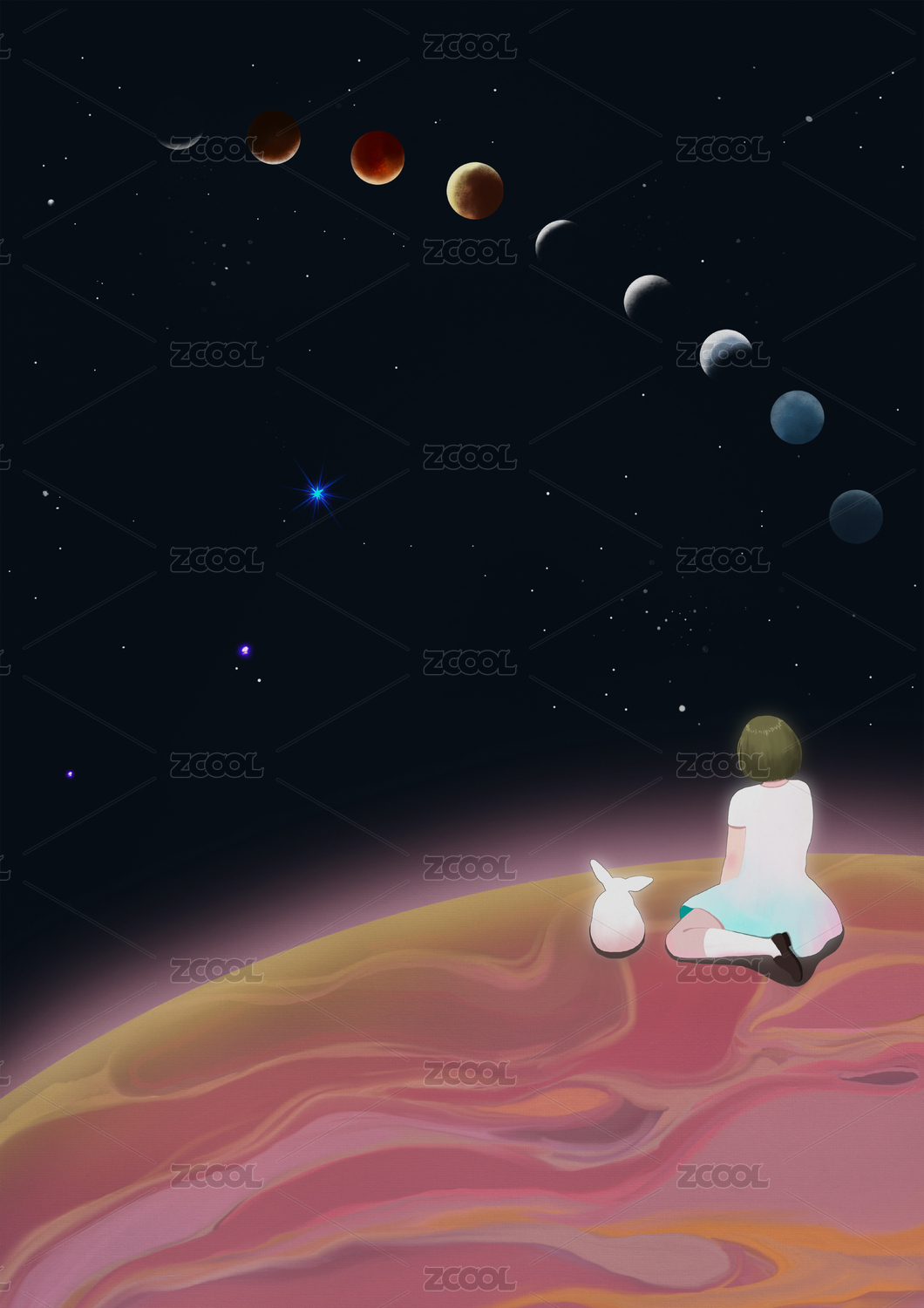 宇宙太空女孩兔子月食星球梦幻治愈系