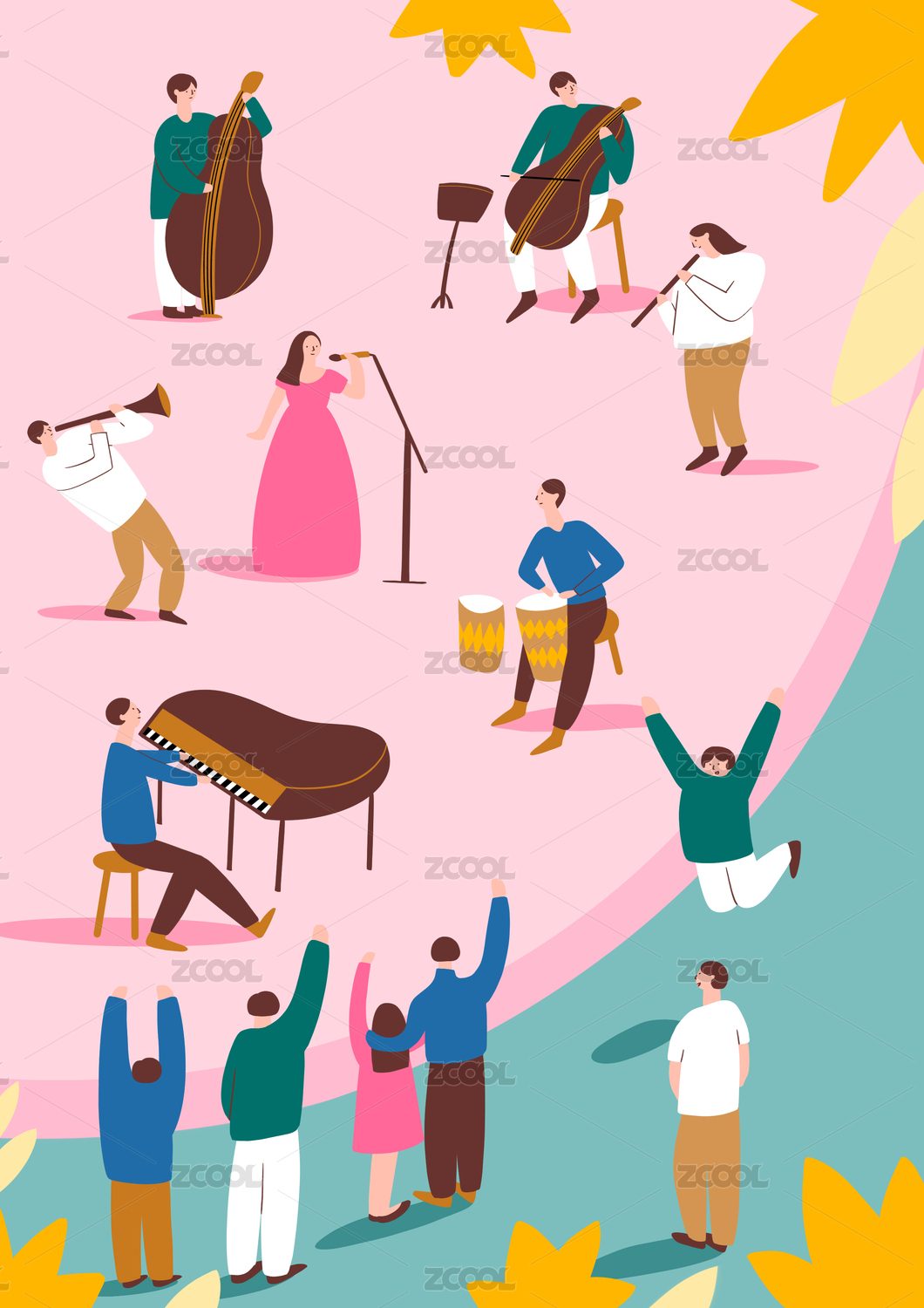 年青人一起庆祝音乐节扁平插画节日海报
