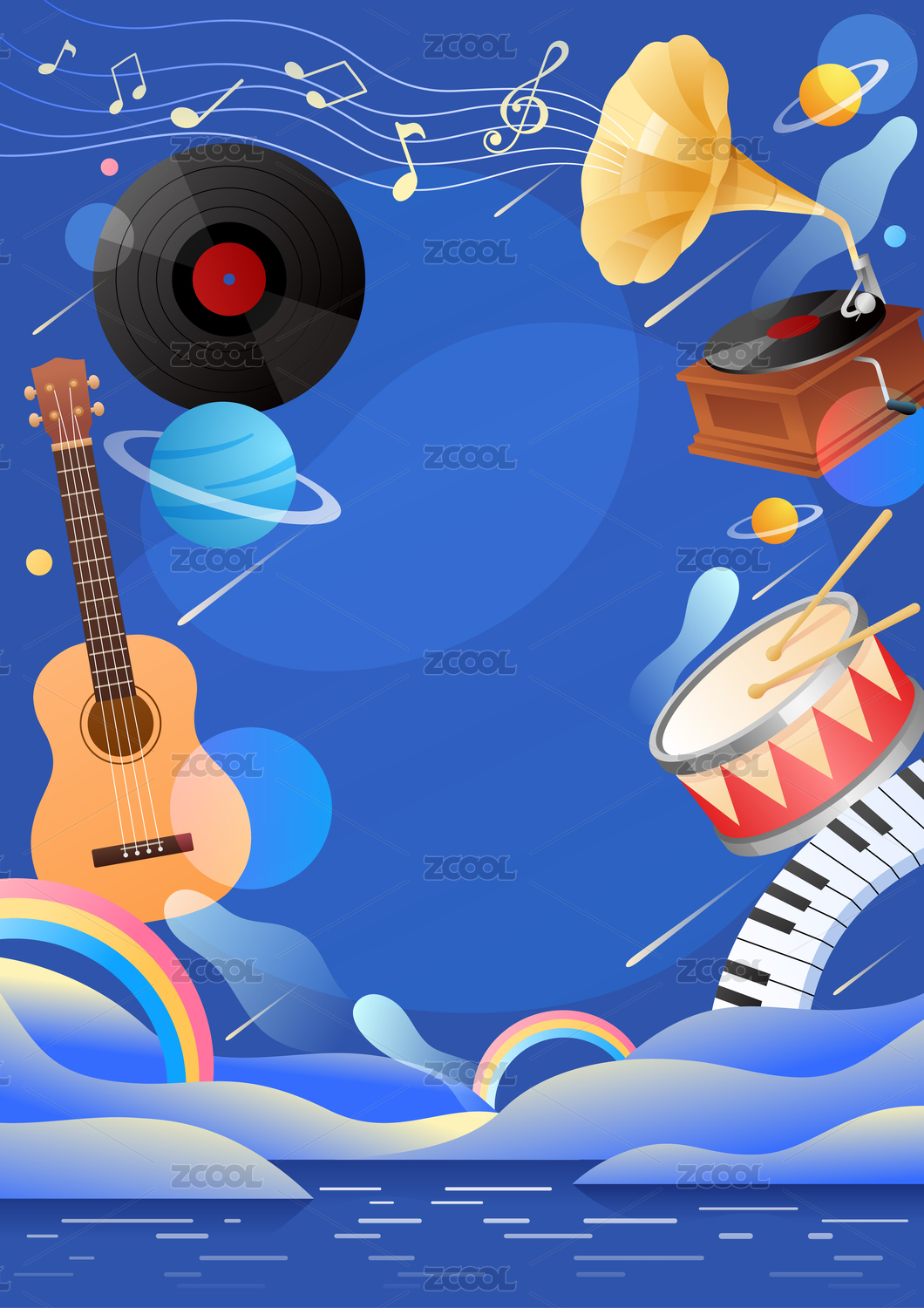 吉他键盘等乐器和留声机等音乐元素