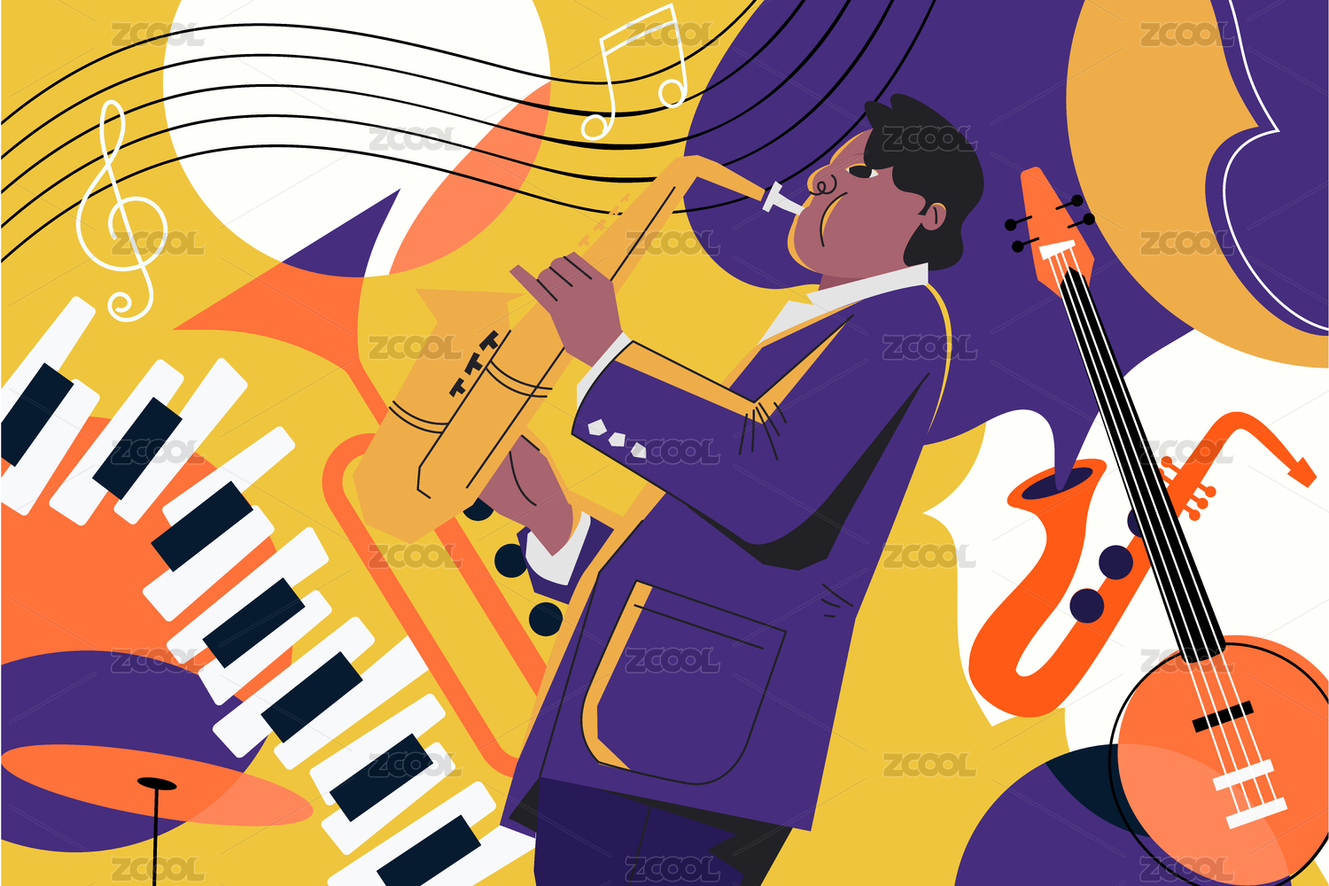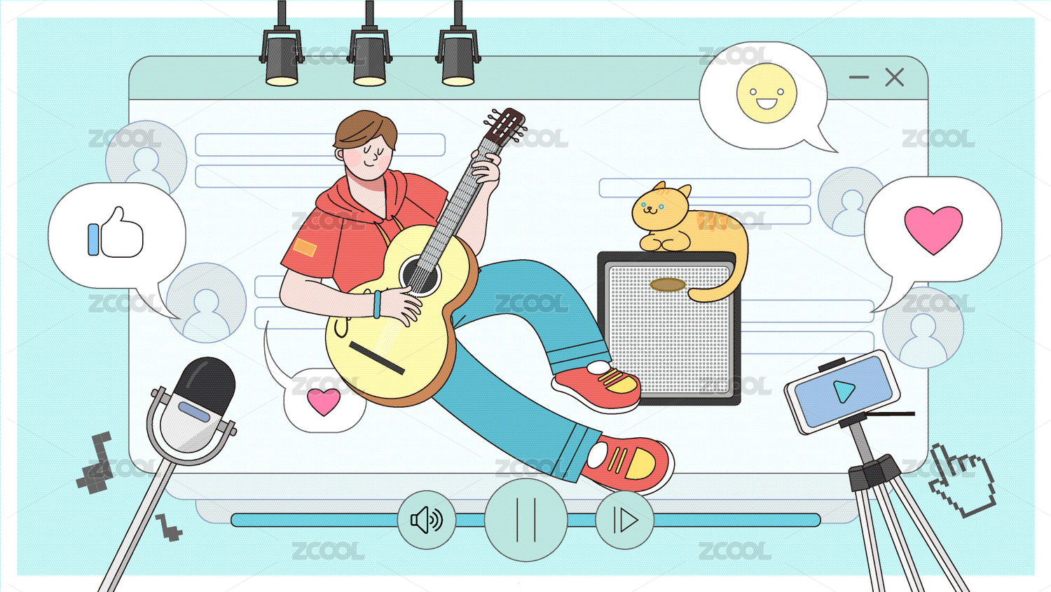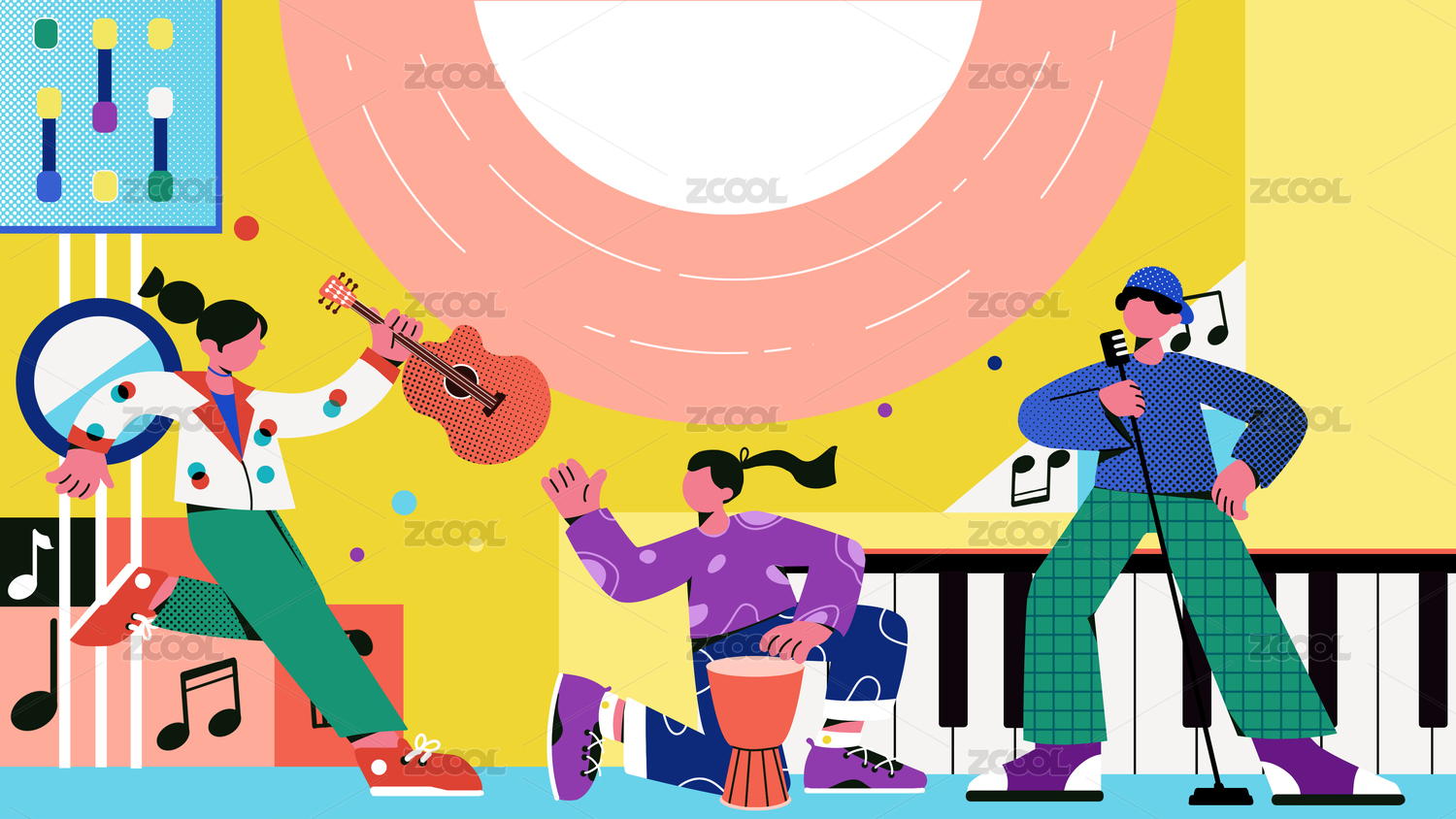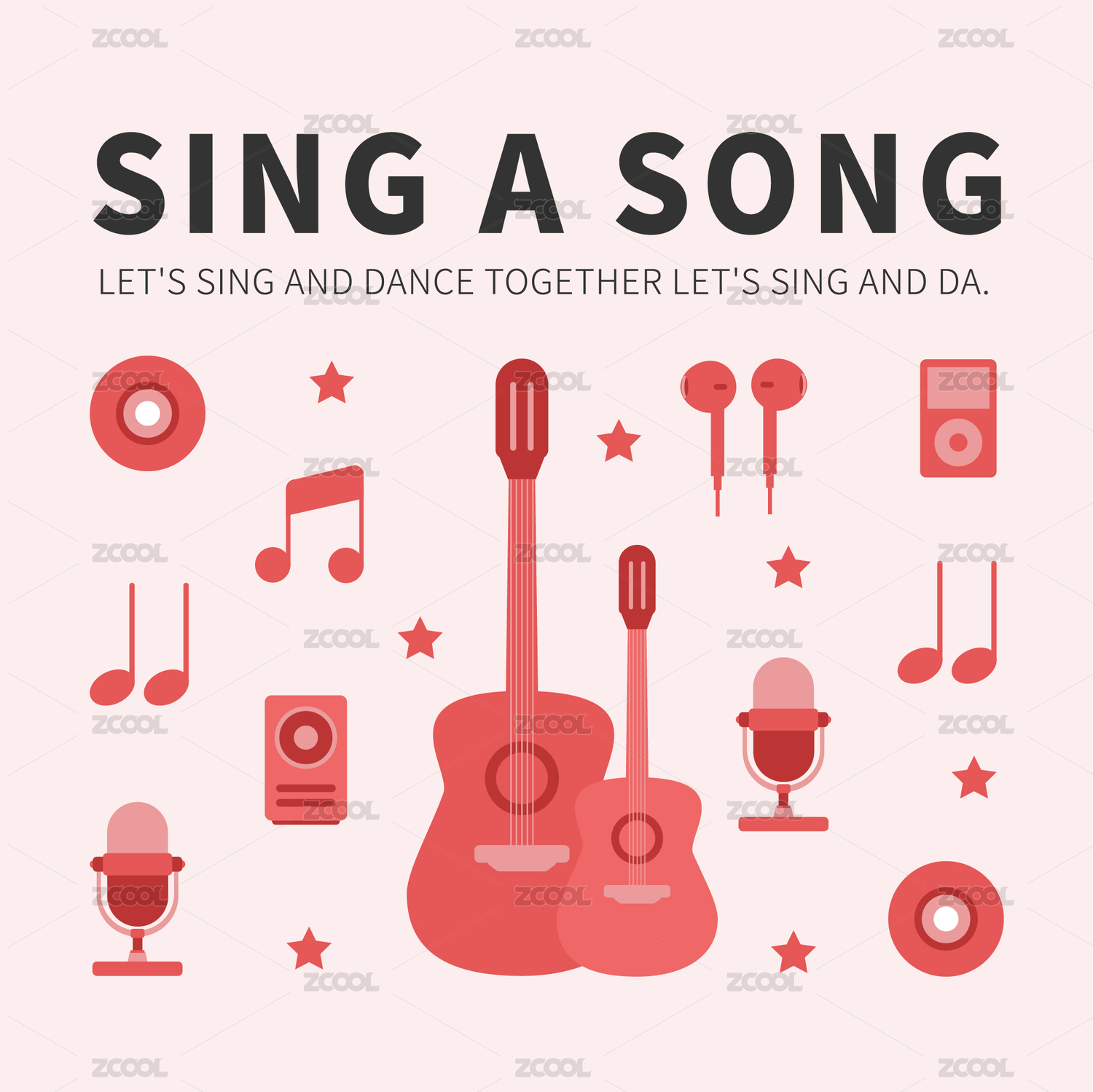 音乐吉他音符歌唱扁平风