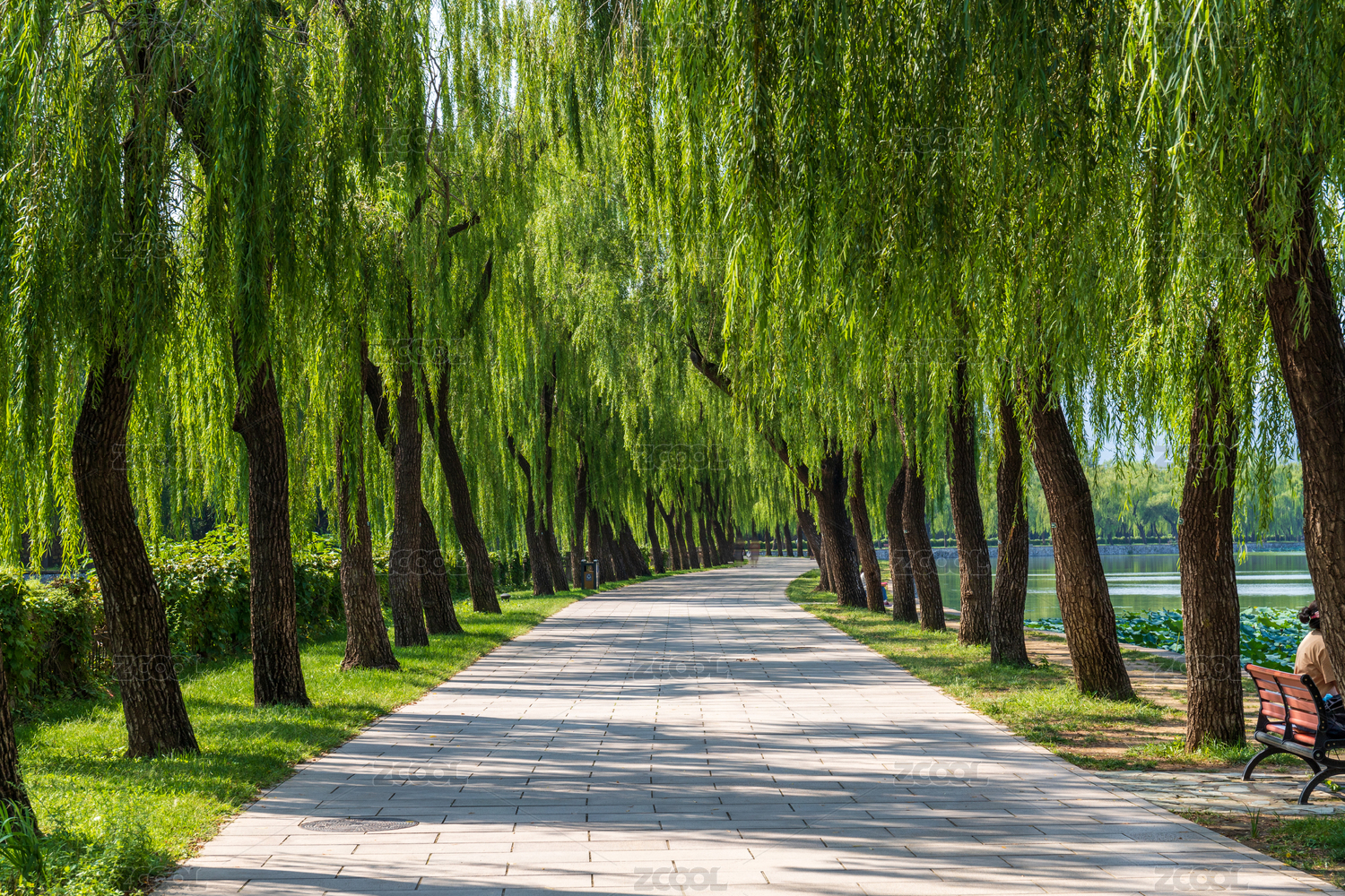 中国北京市颐和园西堤柳荫路径