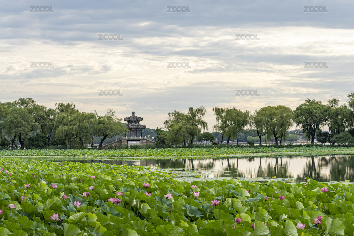 北京颐和园西堤荷花风景