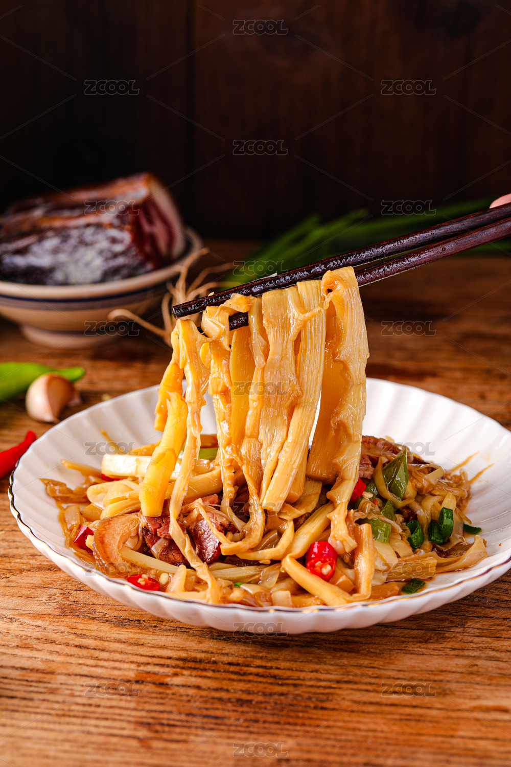 尖笋丝凉拌炒腊肉