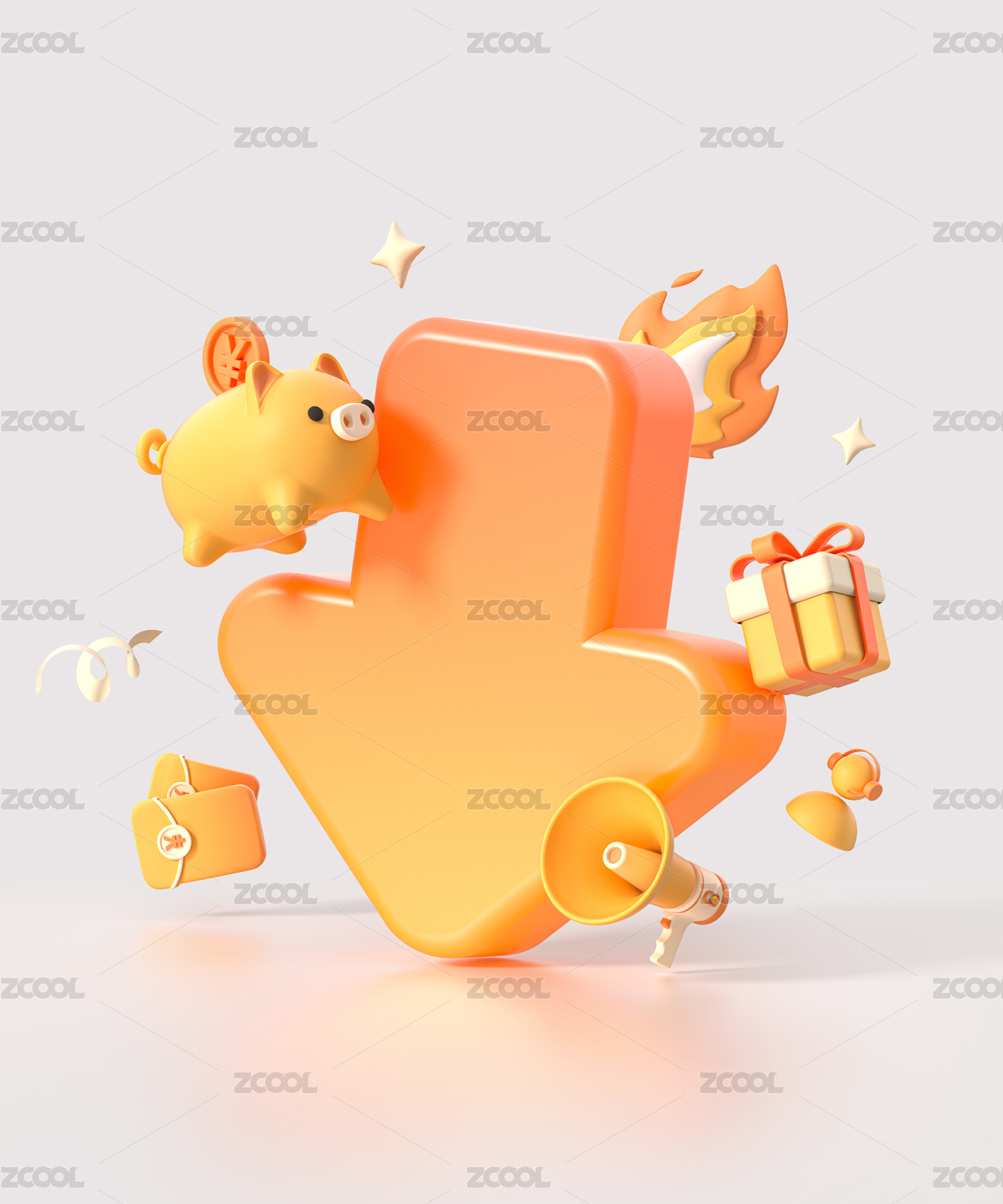 橙色直降降价箭头电商促销活动元素堆3D