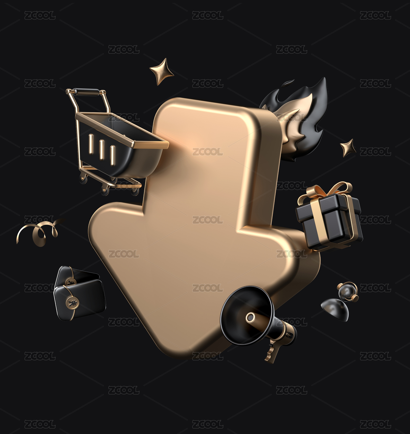高级灰黑金降价箭头品牌促销活动元素堆3D
