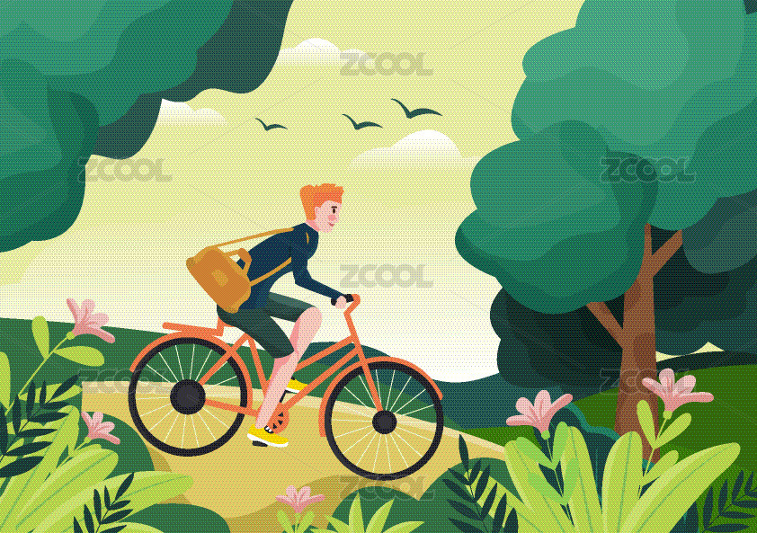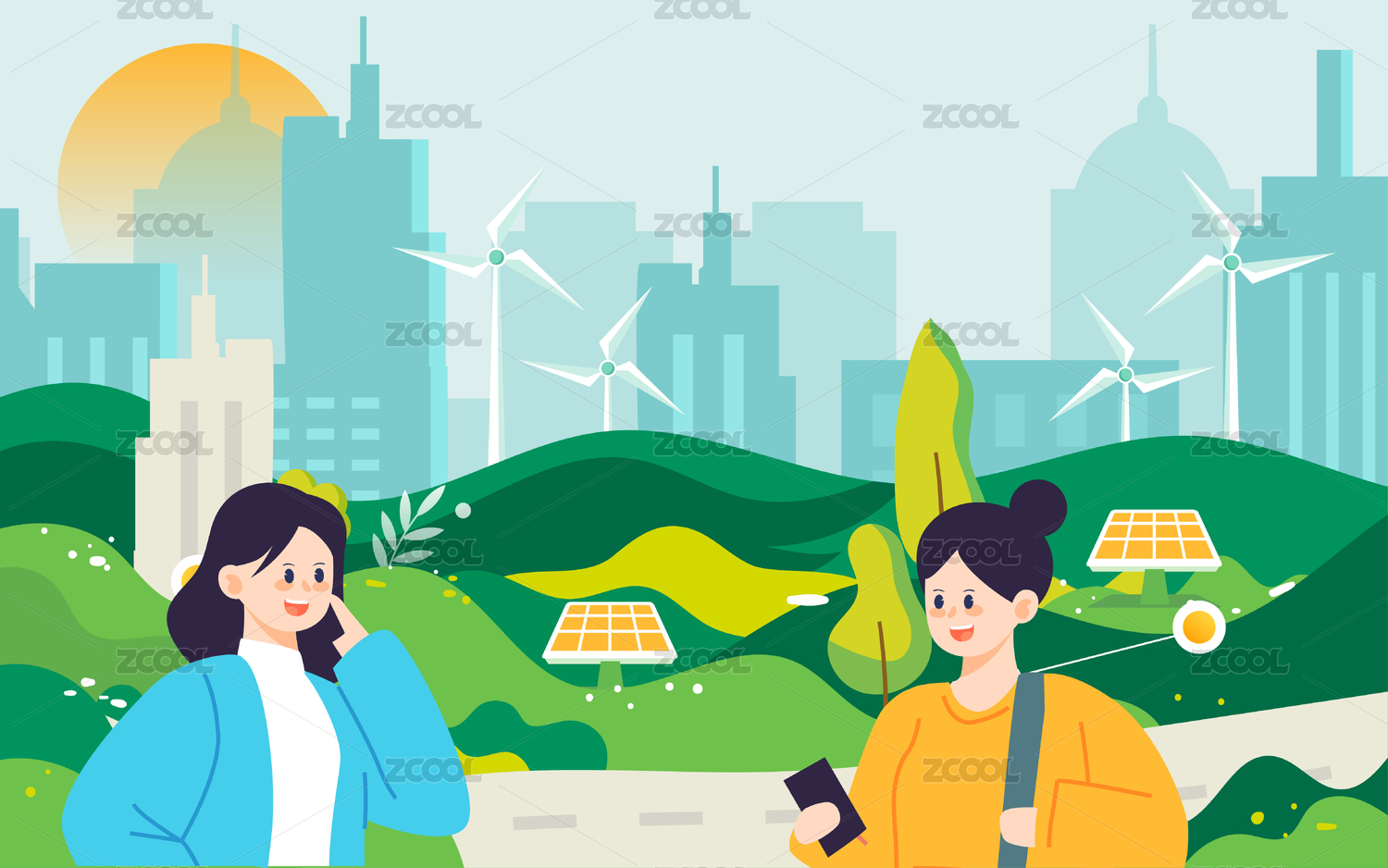 风中撑伞的女孩低碳生活绿色环保插画背景