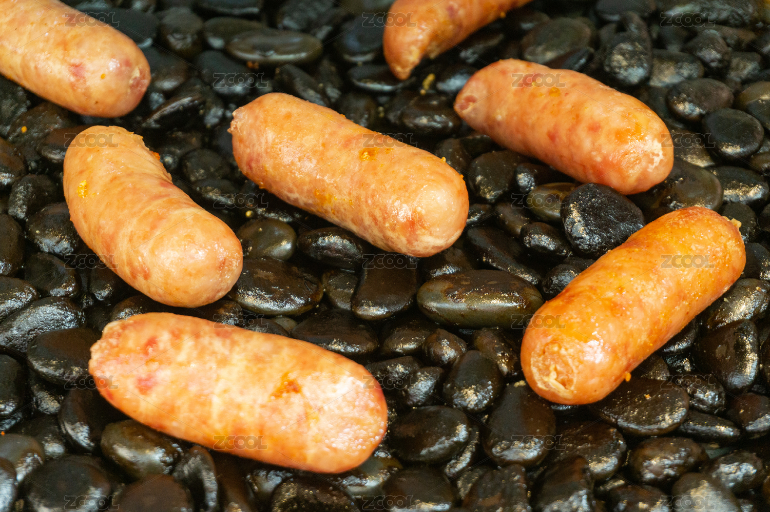 传统小吃火山石烤肠