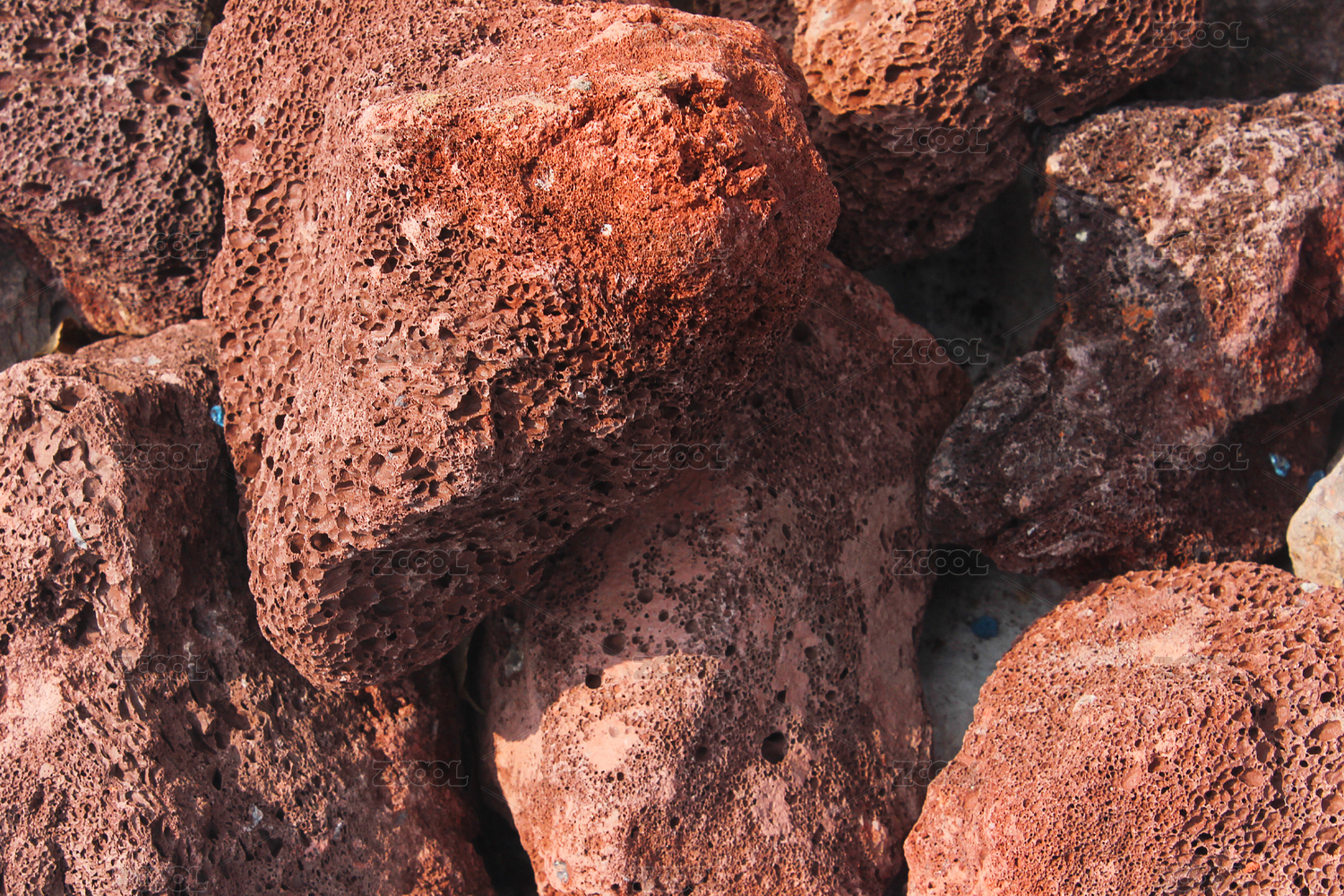 一大批大块的红褐色的火山石