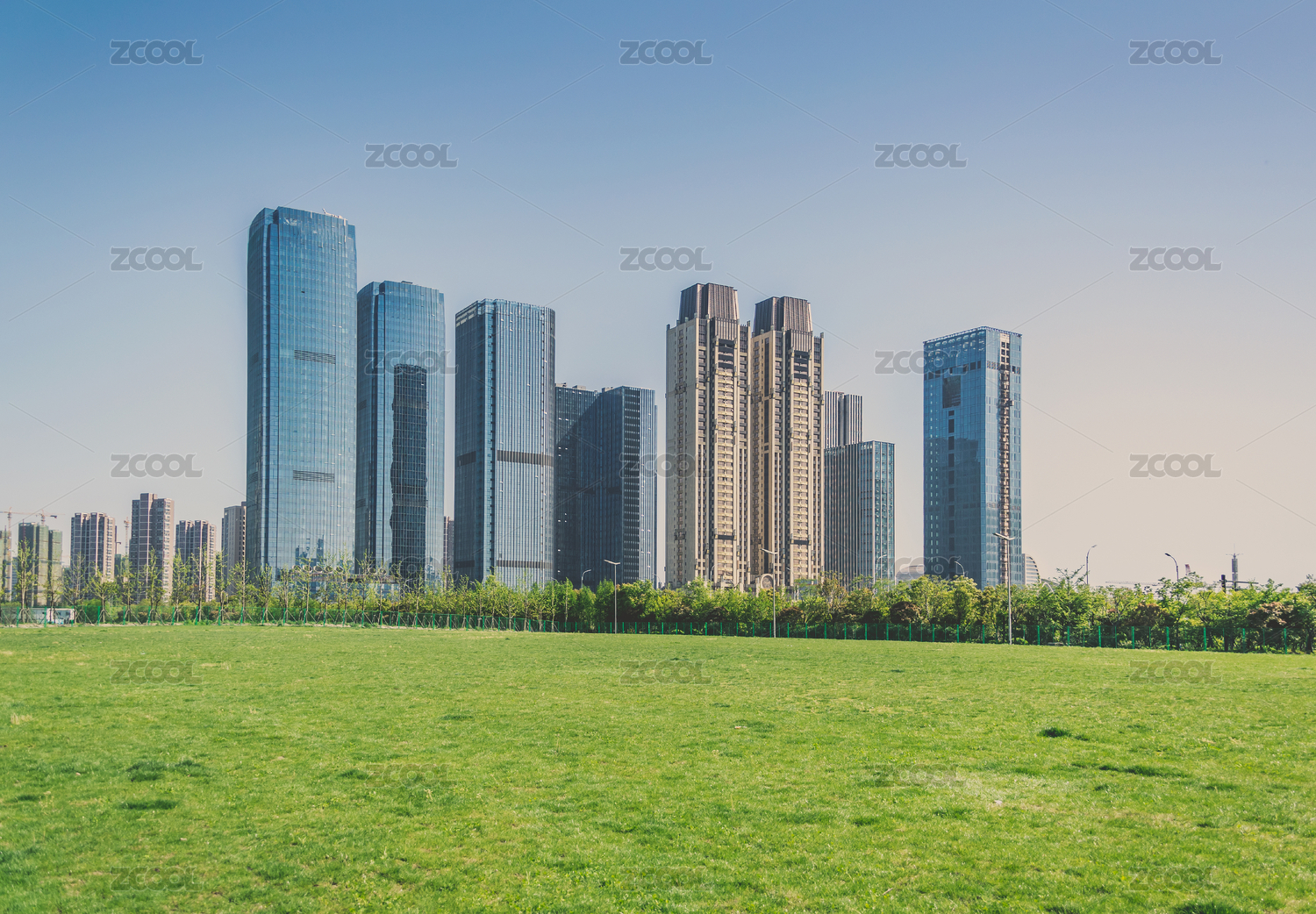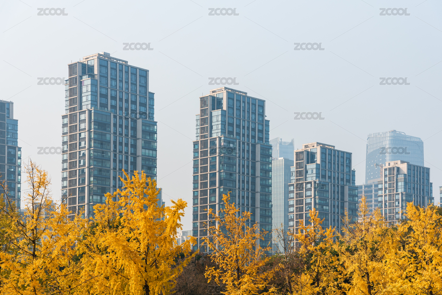 重庆市两江新区中央公园金黄的银杏叶与高楼