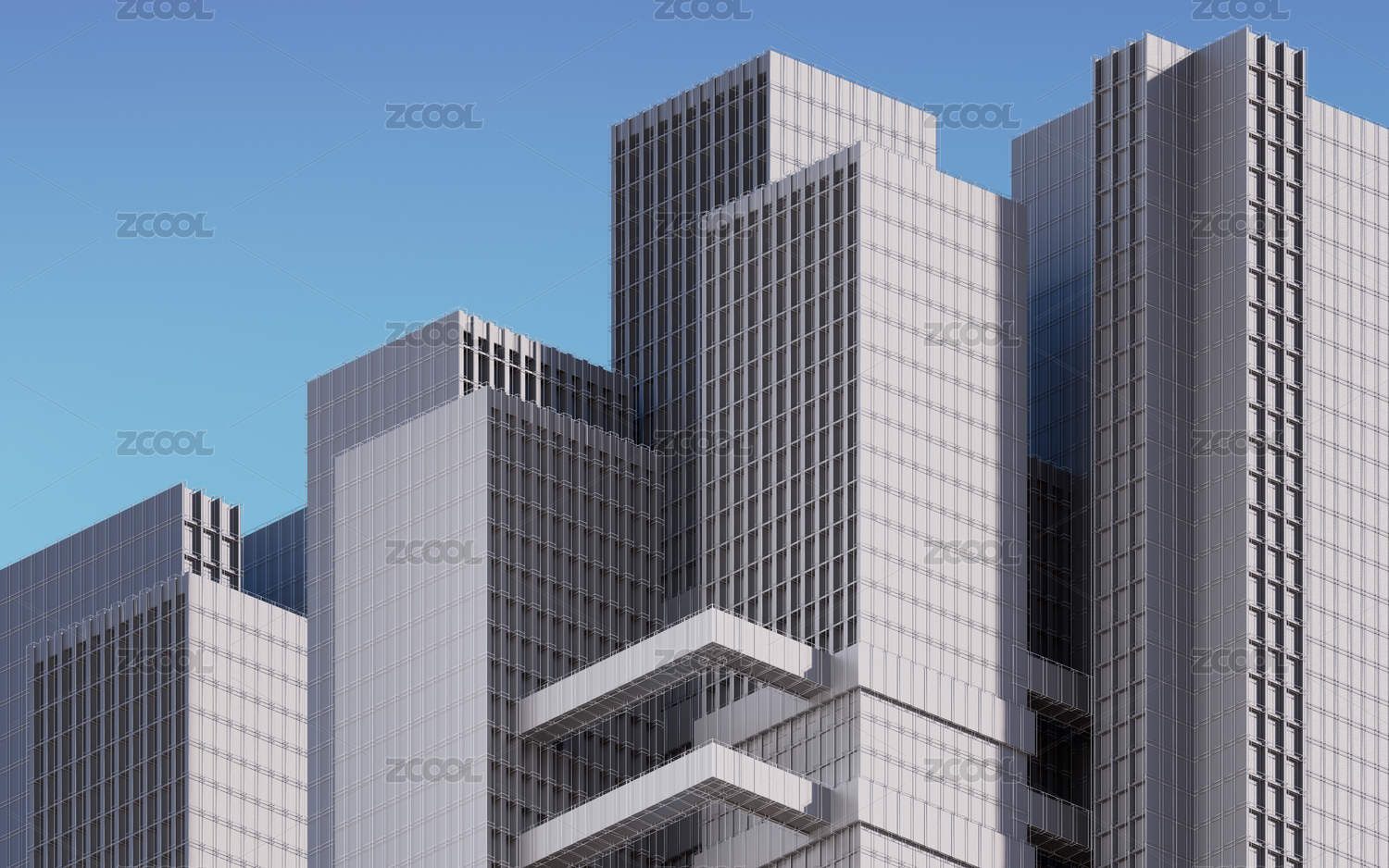 线条构图未来的建筑与电路板。高楼大厦摩天大楼商业现代化城市的未来。