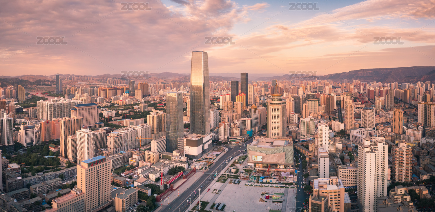 中国甘肃兰州城市高楼建筑风光天际线航拍