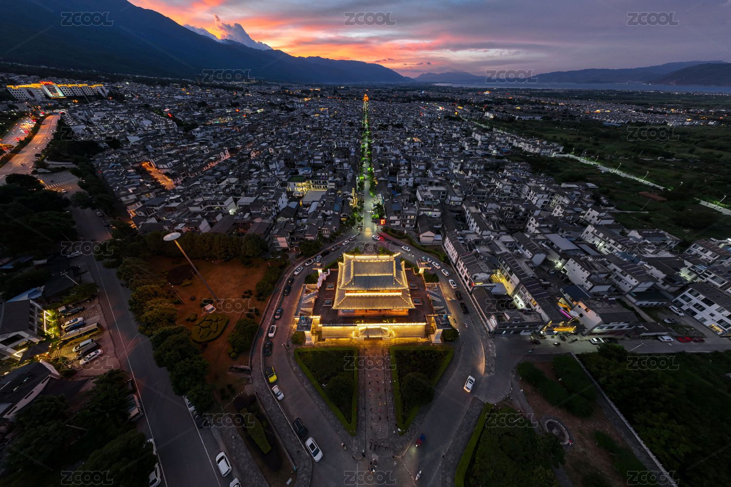 大理文献楼黄昏