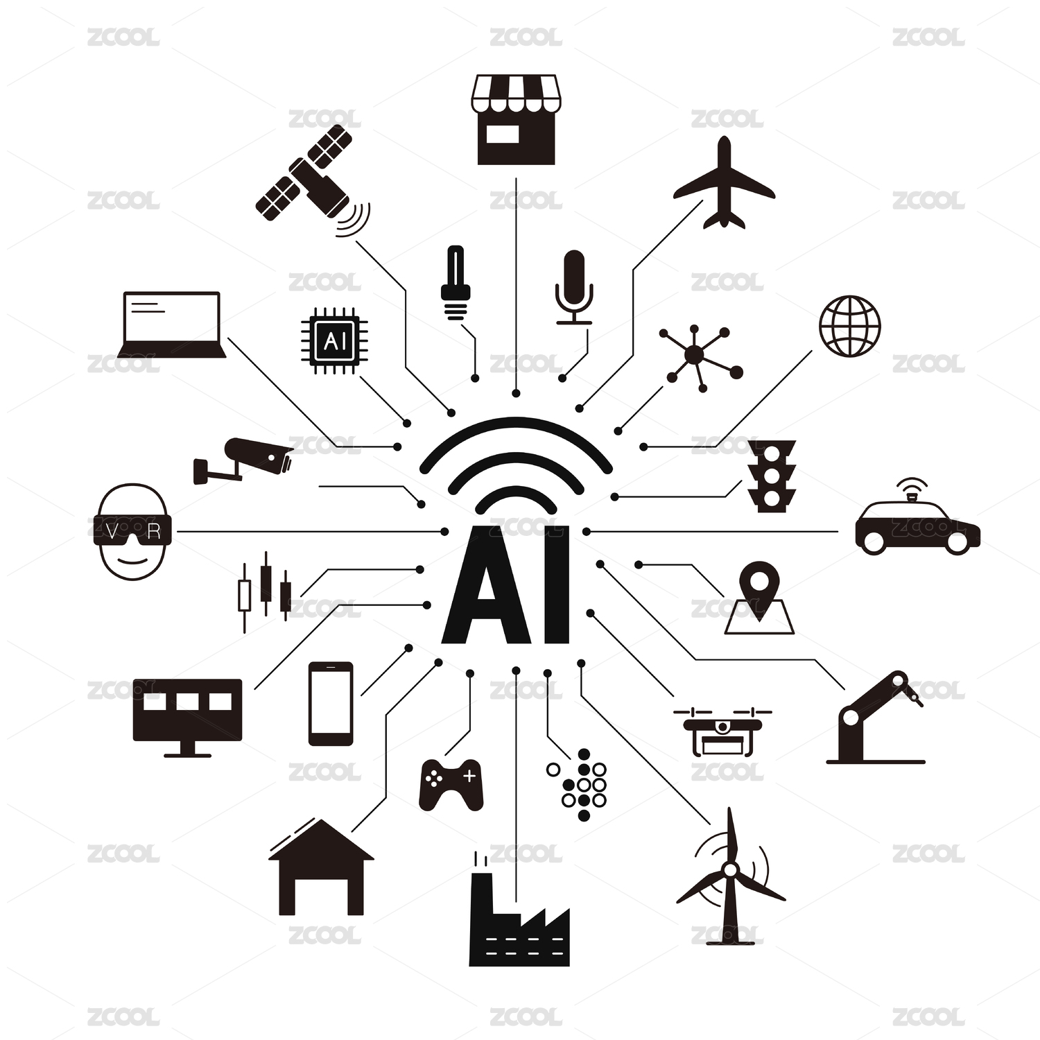 蓝色背景下的台灯铅笔和AI字母组成的静物