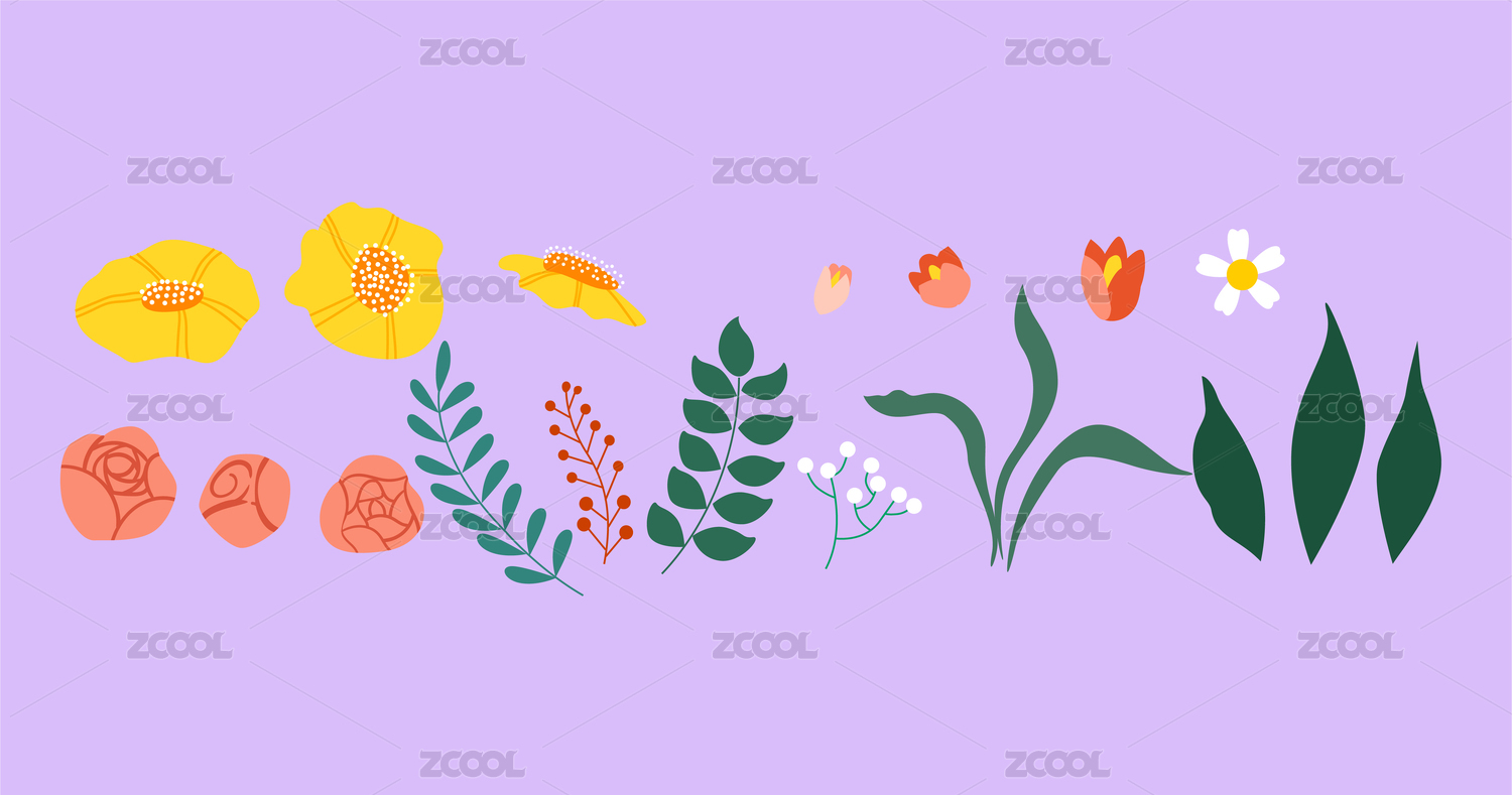 扁平风植物鲜花插画
