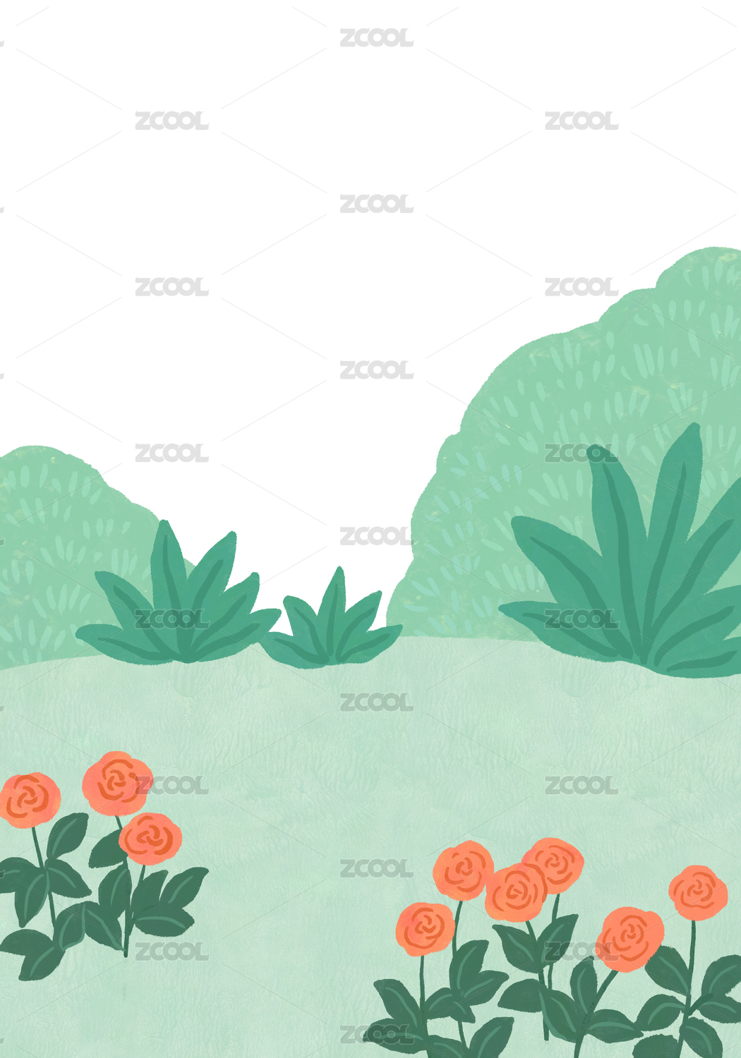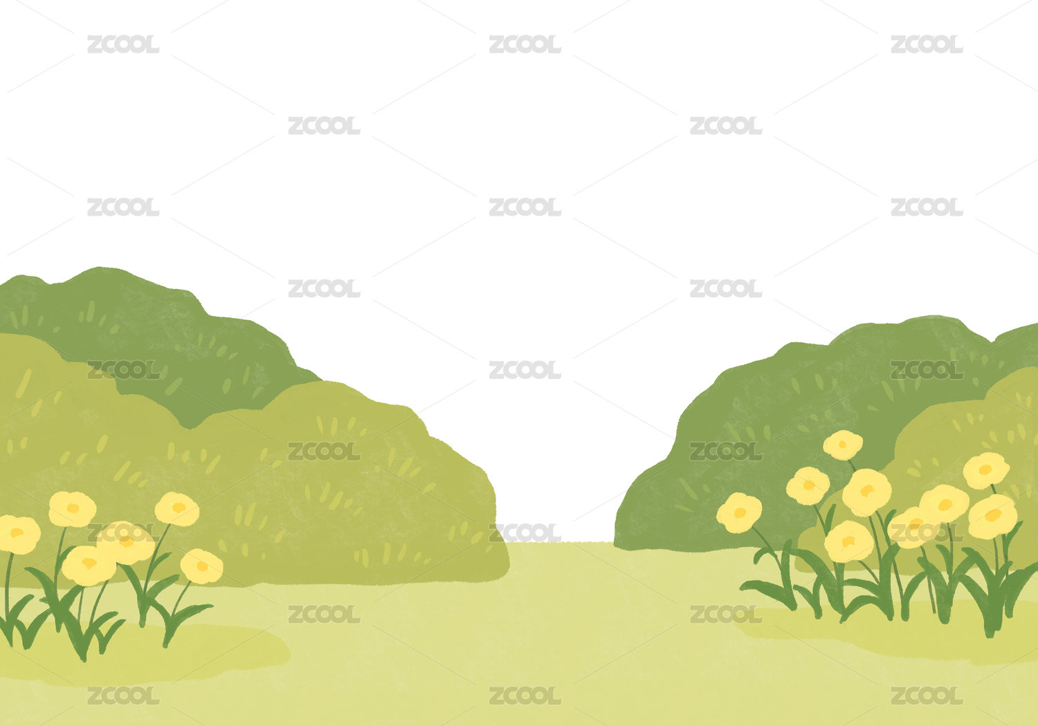 春天公园户外草地鲜花插画
